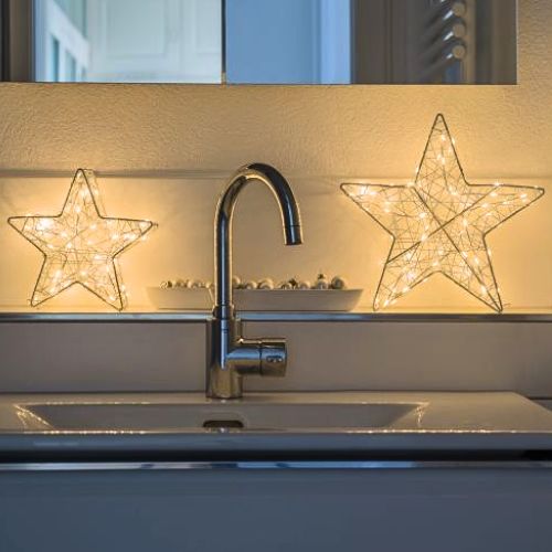 Der 3D Stern Bianco S verbindet modernes Design mit warmem Lichterzauber. Gefertigt aus weiss lackiertem Metall mit feinen Kupferdetails, setzt er elegante Akzente – ob im Wohnraum, am Fenster, auf dem Balkon oder im Garten. 40 warm leuchtende LEDs in der Farbe "sunnywarm" sorgen für eine gemütliche, einladende Atmosphäre.