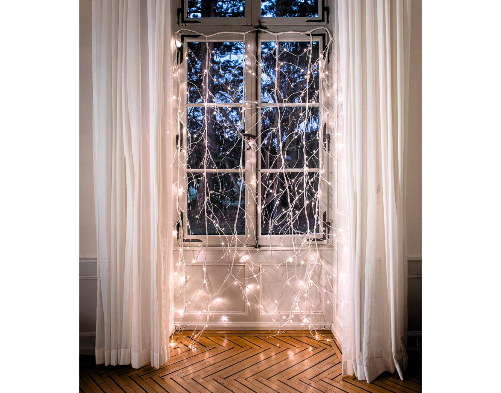 Verleihen Sie Ihrem Wohnraum eine stimmungsvolle Atmosphäre mit dem LED-Lichtervorhang "Ast" in klassischem Weiss. Mit seinen 312 warmweissen LEDs verteilt auf 6 Stränge sorgt dieser Lichtervorhang für ein sanftes, gemütliches Lichtspiel – ideal für den Innenbereich. Dank einer Grösse von 140 cm Breite und 250 cm Höhe eignet sich der Vorhang perfekt als dekorativer Blickfang an Fenstern, Wänden oder Raumteilern.
