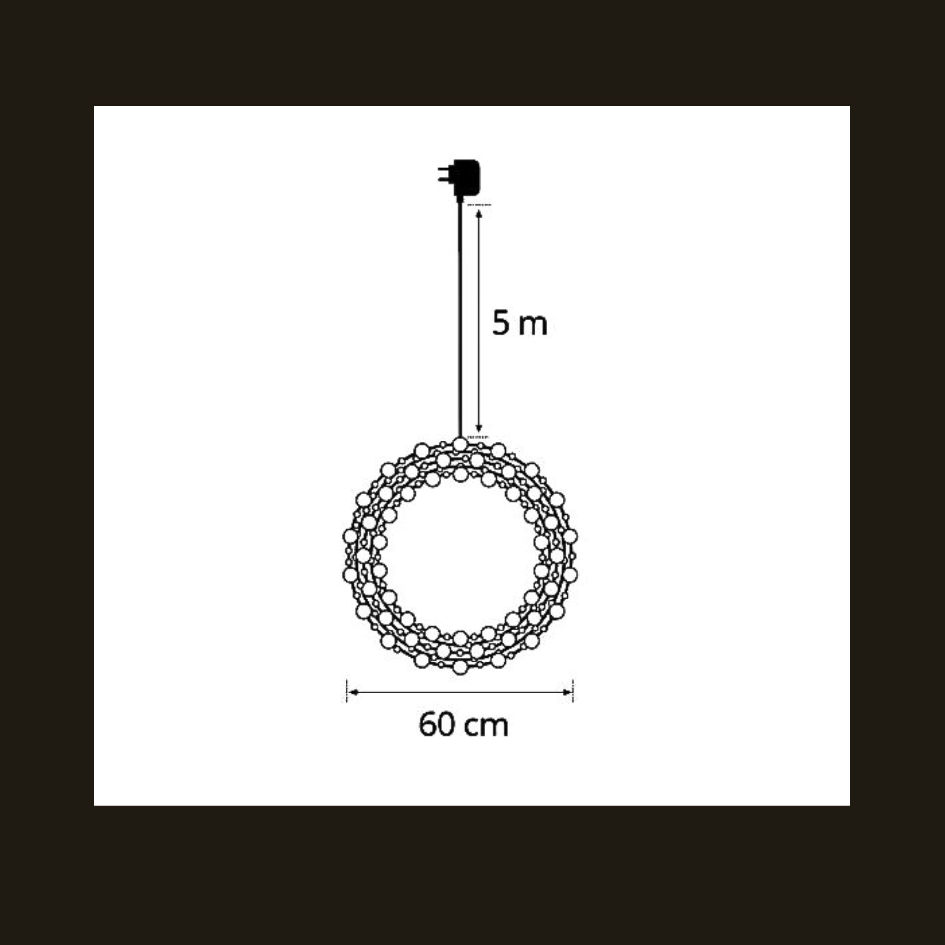 Der Kranz eignet sich für den Einsatz im Innen- und Aussenbereich und lässt sich durch das 5 Meter lange Anschlusskabel flexibel platzieren. Mit Netzbetrieb (24V, 7.2W) überzeugt er zudem durch energieeffiziente Leistung.