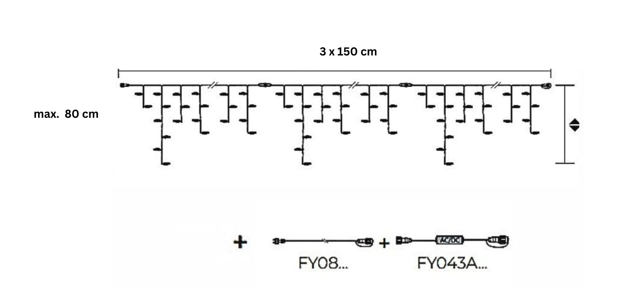 Hinweis: Für den Betrieb wird ein Stromanschluss mit Konnektor benötigt. Mit einem Anschluss lassen sich bis zu 20 Ice-Light-Elemente (max. 90 Meter Gesamtlänge) gleichzeitig betreiben.