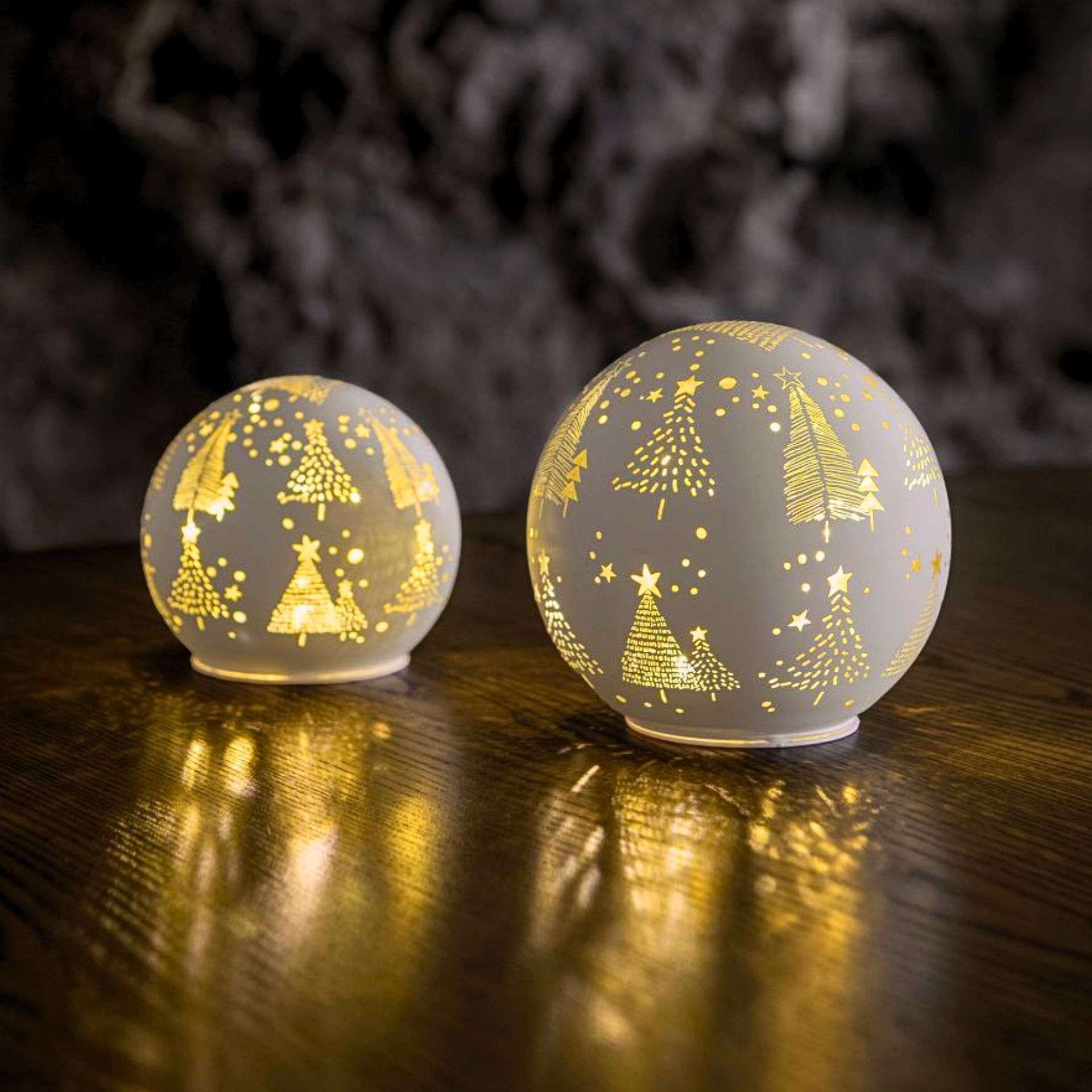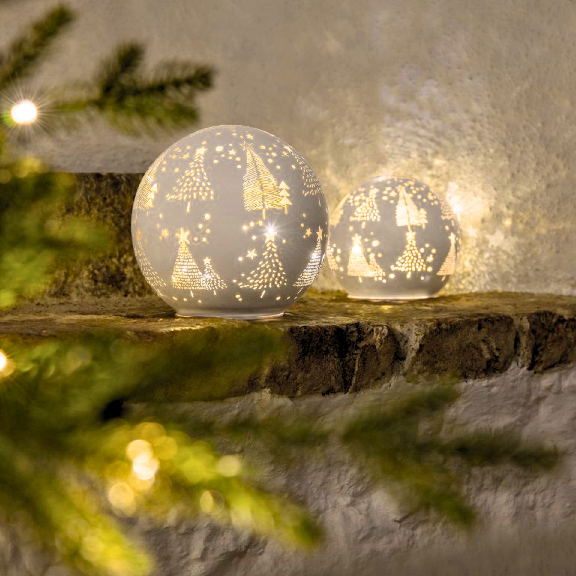 Dieses elegante Glas Ball Set bringt eine zauberhafte Atmosphäre in jedes Zuhause. Die beiden weissen Glasbälle, gefüllt mit 18 warmweissen LEDs, erzeugen sanftes, romantisches Licht und schaffen eine warme, einladende Stimmung.