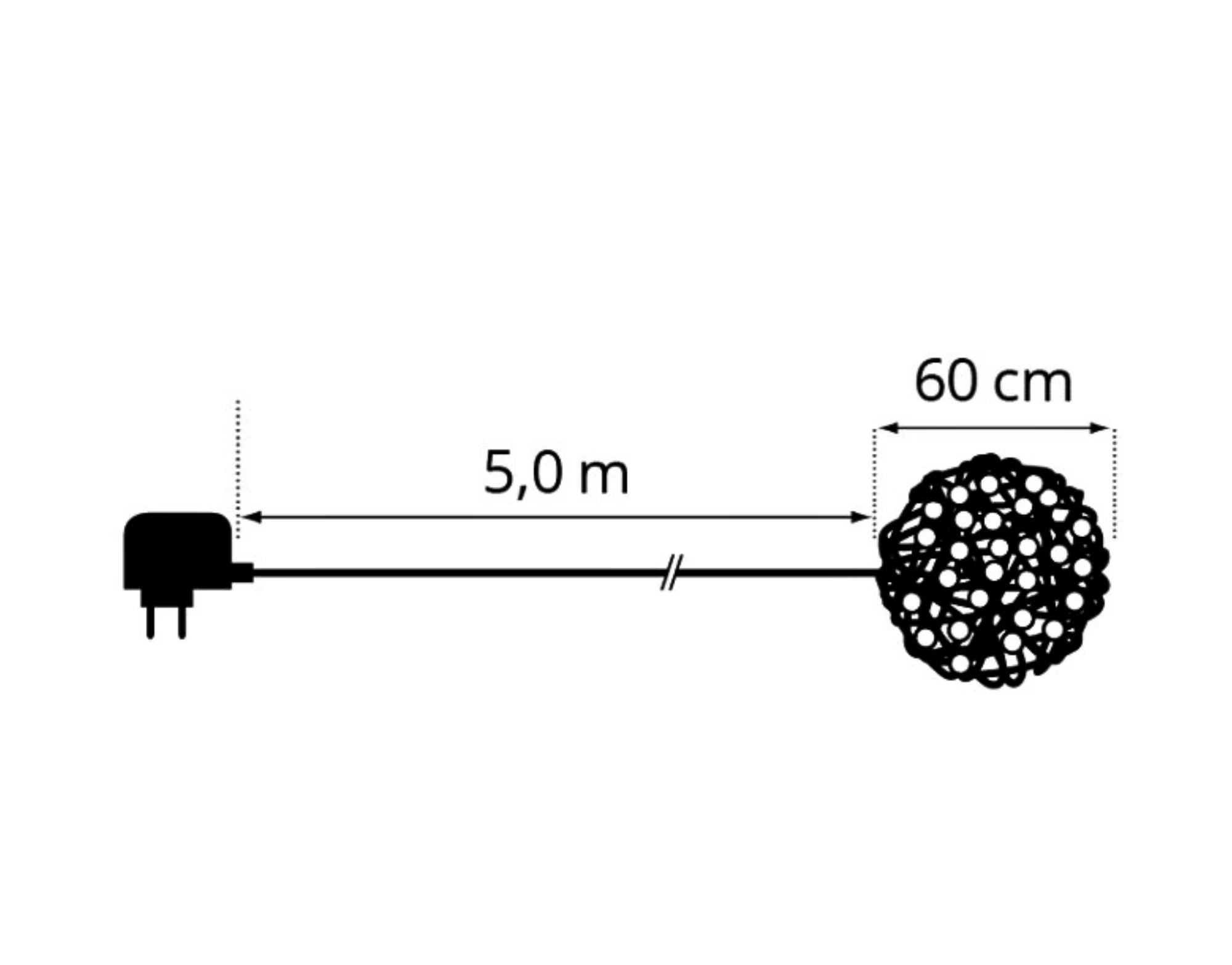 Mit 200 warmweissen LEDs sorgt der Ball für stimmungsvolle Beleuchtung. Dank Netzbetrieb (31V/6W) ist eine zuverlässige und konstante Helligkeit garantiert. Das klare Anschlusskabel mit einer Länge von 5 Metern bietet dabei genügend Flexibilität beim Platzieren.