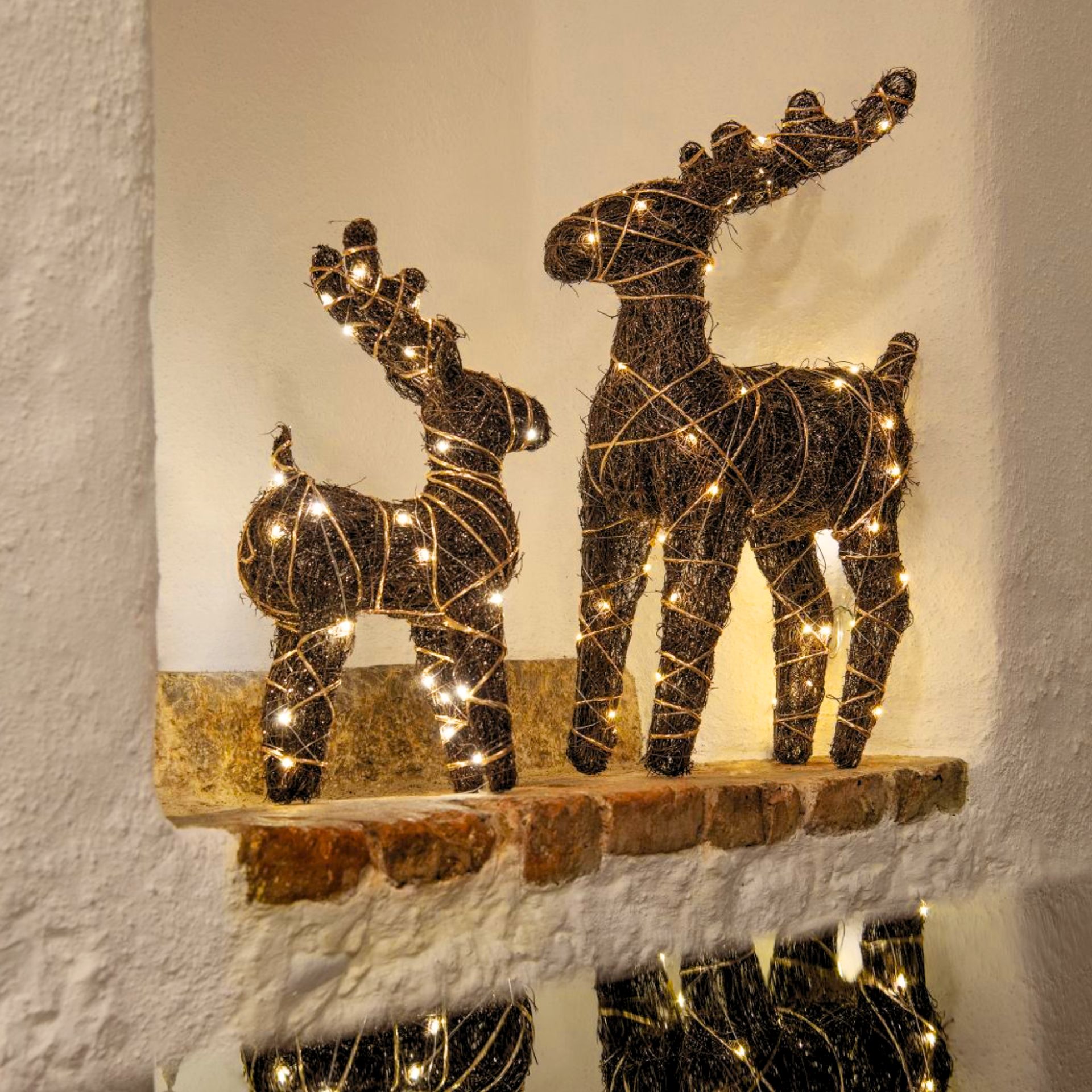 LED-Rentier Natural, 60 LEDs warmweiss, batteriebetreiben & Timerfunktion