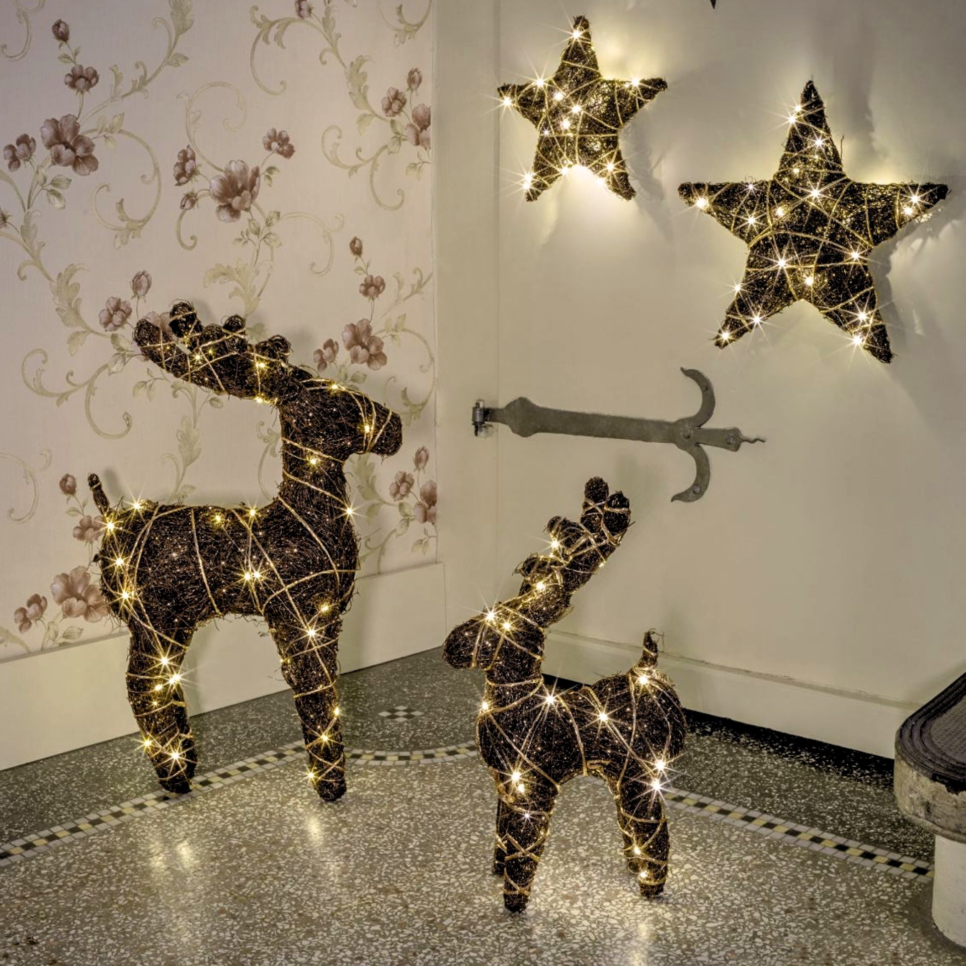 LED-Rentier Natural, 40 LEDs warmweiss, batteriebetreiben & Timerfunktion