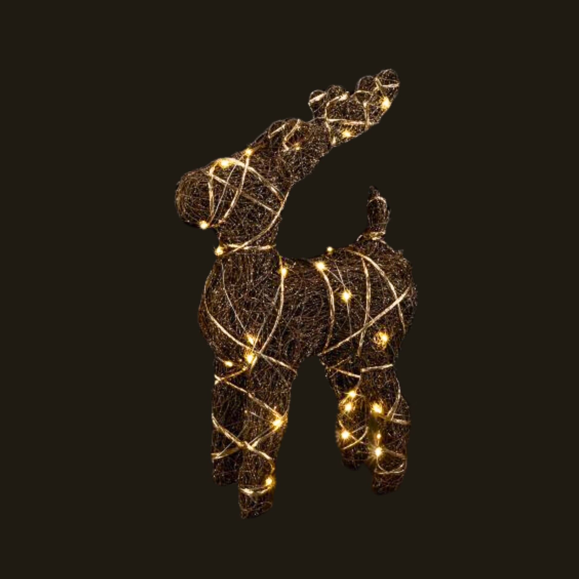 Dieses charmante LED-Rentier aus Rattan bringt natürlichen Weihnachtszauber in Ihr Zuhause. Mit einer Höhe von 37 cm und einer warmweissen LED-Beleuchtung sorgt es für eine gemütliche Atmosphäre – ideal für die winterliche Dekoration von Wohnräumen, Fluren oder Fensterbänken.