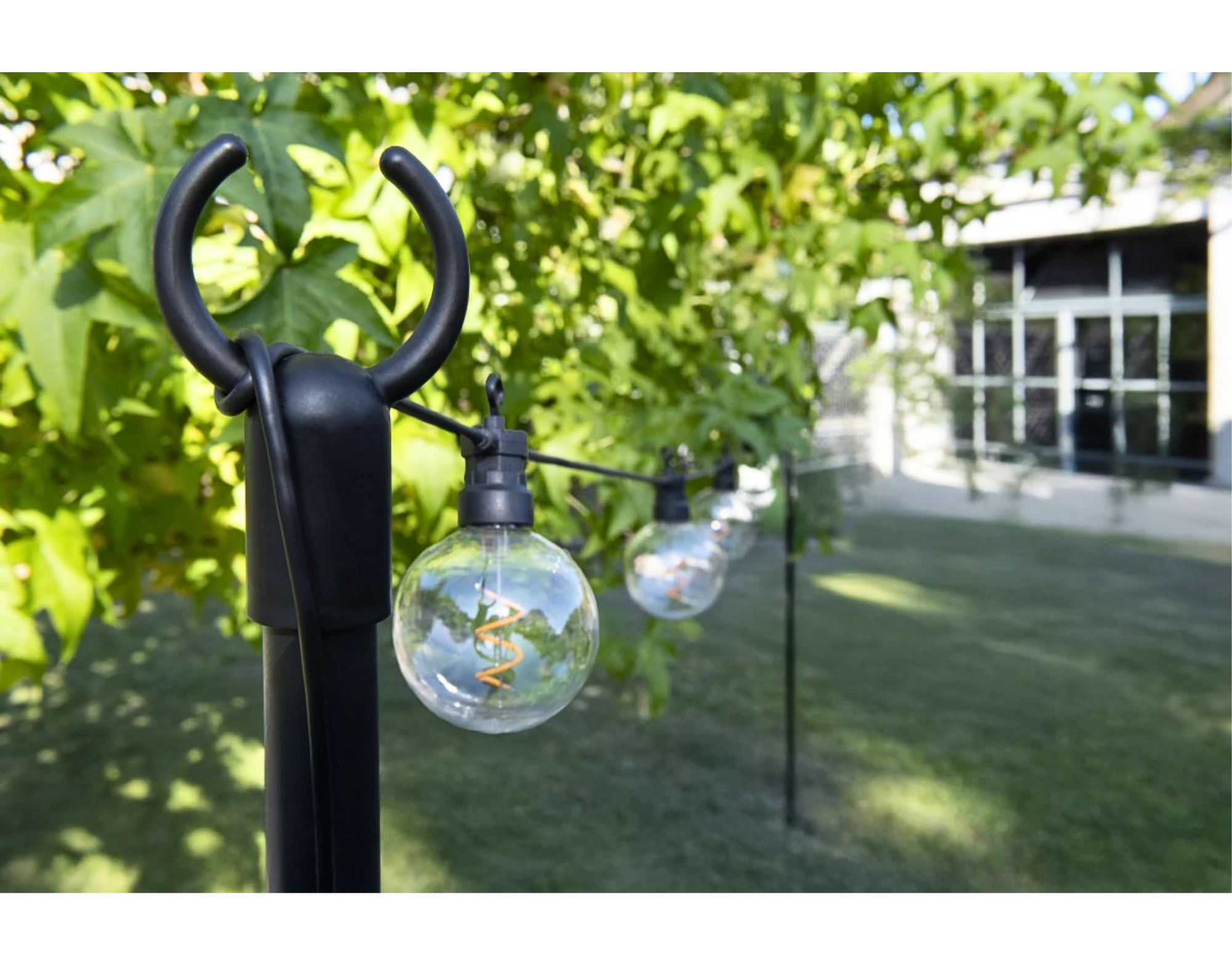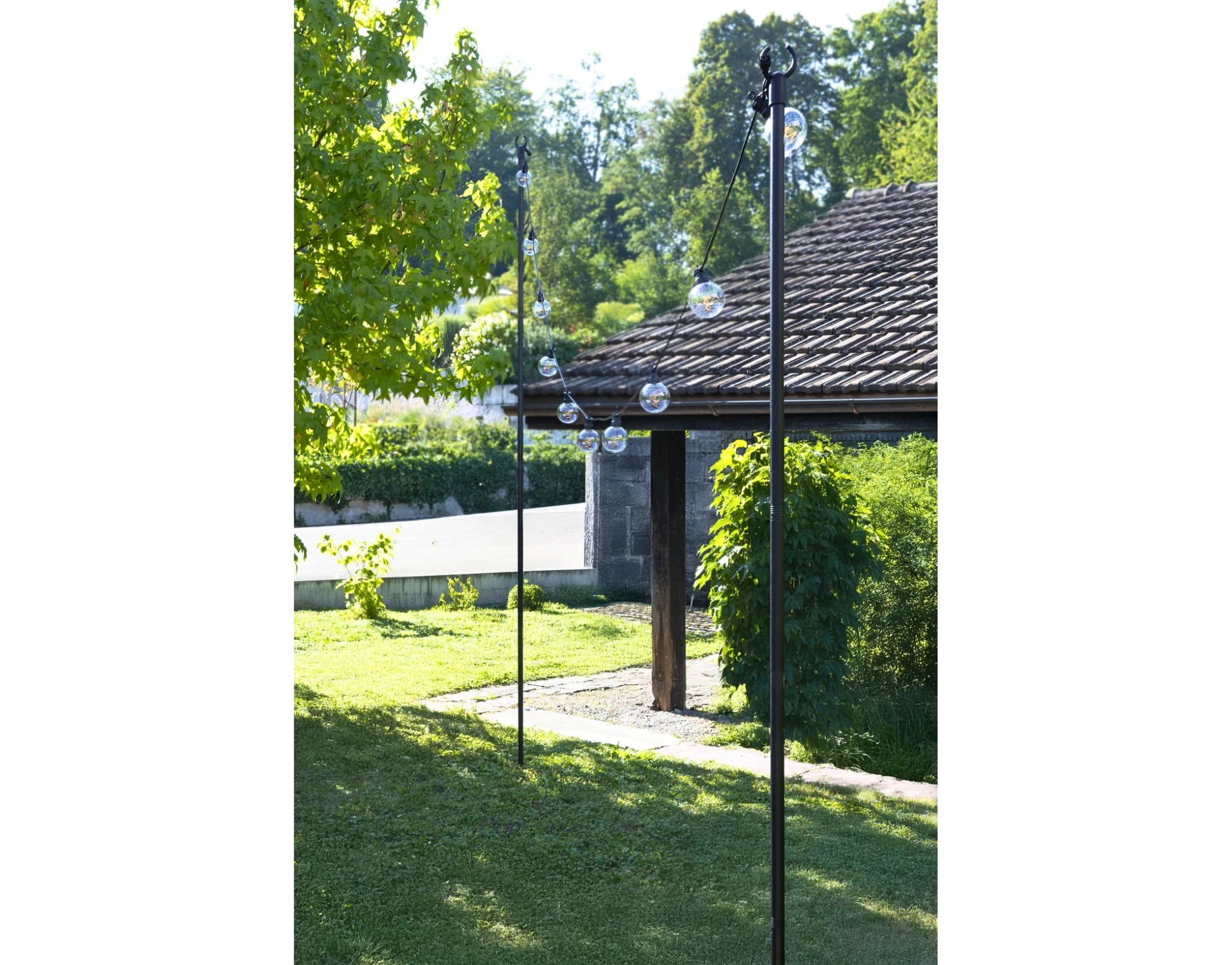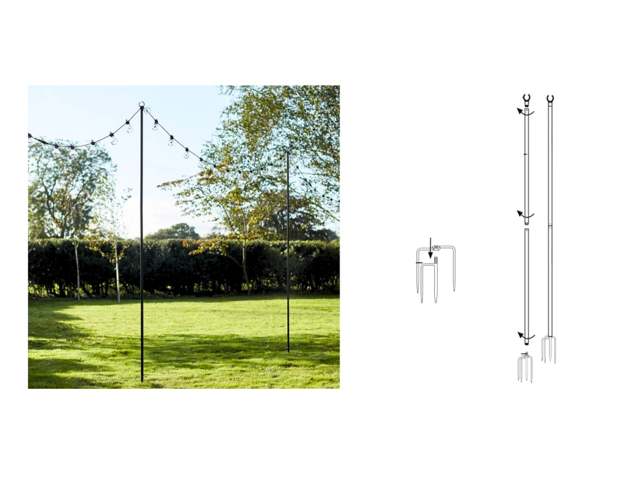 Mit dem Partylicht Stick Set 2 Stück lassen sich Partylichterketten im Garten einfach und flexibel befestigen. Jeder Stick wird inklusive Wandhalter oder Bodenspiess sowie Standplatte geliefert, sodass die Lichter sicher und stabil installiert werden können, ob auf Rasen, Terrasse oder an Wänden.
