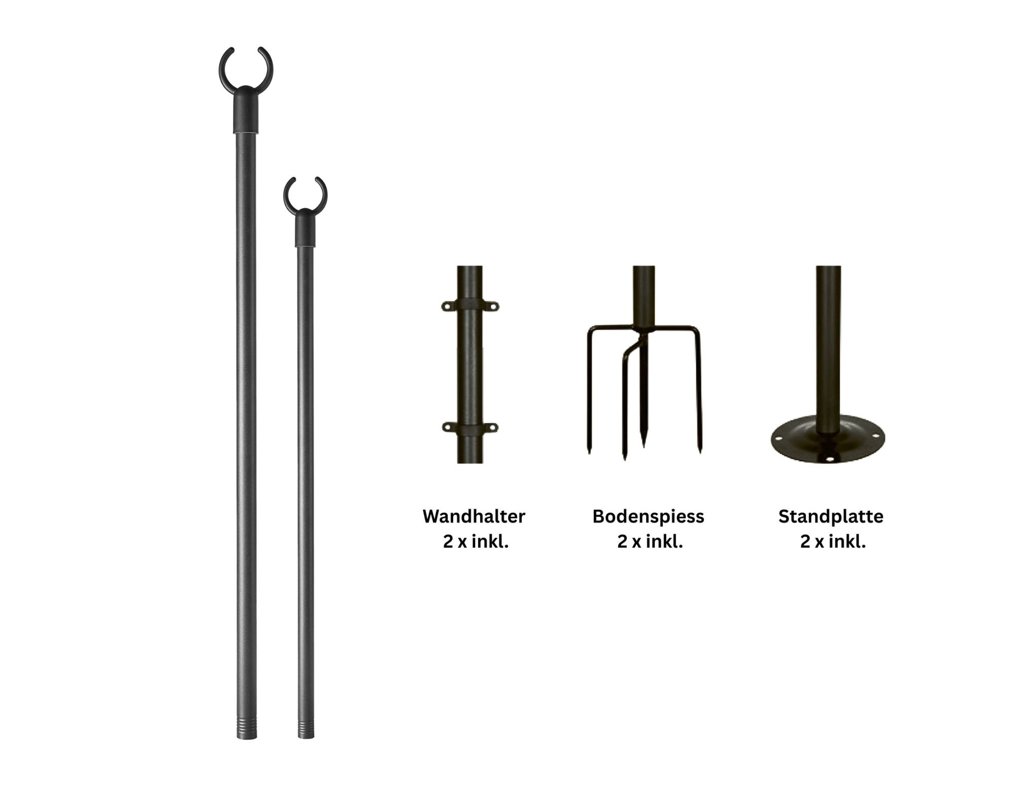 Die robusten Sticks aus schwarzem Metall haben eine Höhe von 305 cm und einen Durchmesser von 2,5 cm. Mit einem Gewicht von 3,42 kg pro Stick stehen sie stabil und zuverlässig, selbst bei Wind. So sorgen sie für eine stimmungsvolle Beleuchtung bei jeder Feier, ohne dass komplizierte Befestigungen nötig sind.
