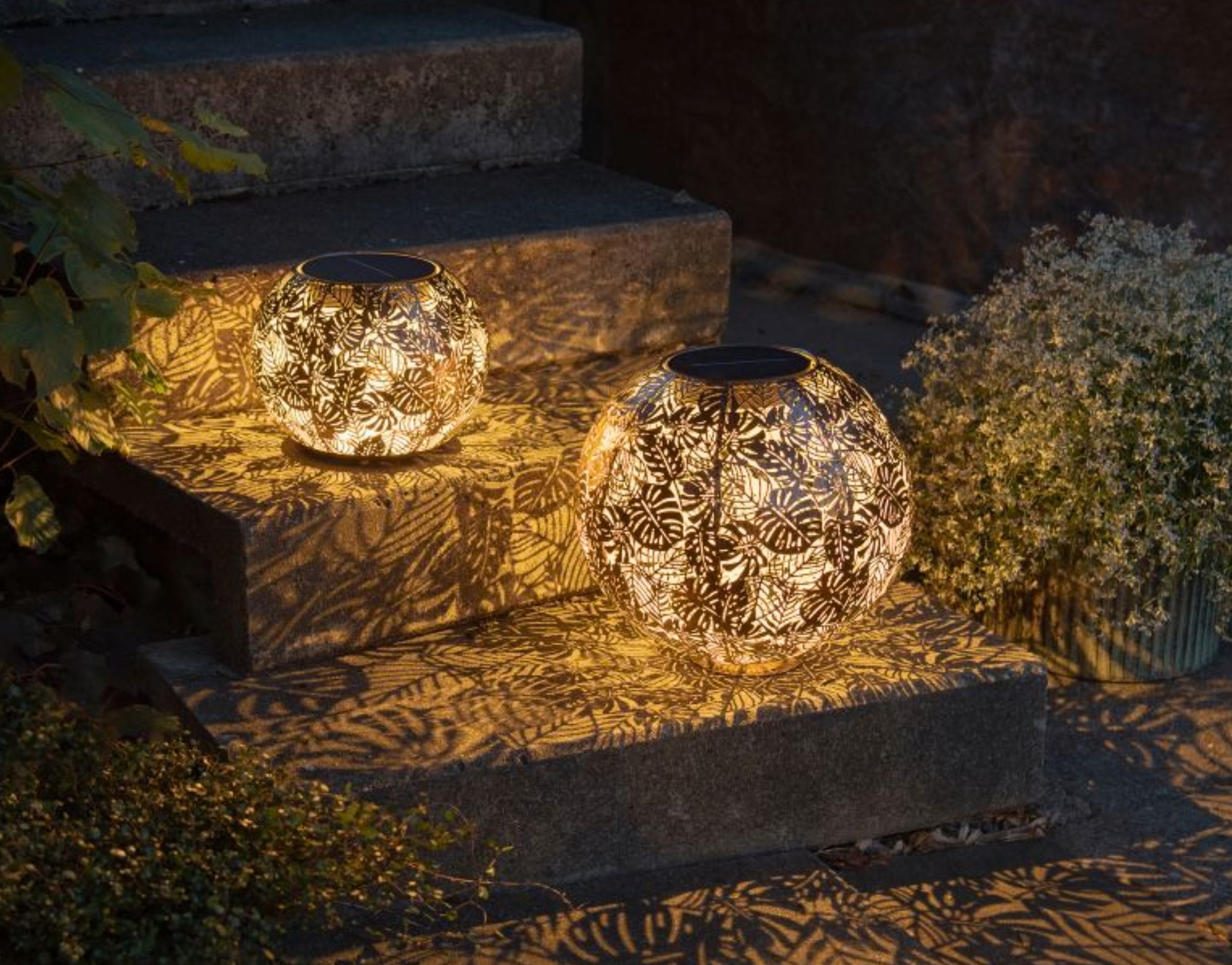Die Solar Antic Globe Jungle bringt tropisches Flair in Ihren Garten, auf die Terrasse oder den Balkon. Das fein gearbeitete Metallgehäuse in edlem Bronze mit dekorativem Jungle-Muster erzeugt faszinierende Licht- und Schattenspiele und sorgt für eine warme, einladende Atmosphäre.