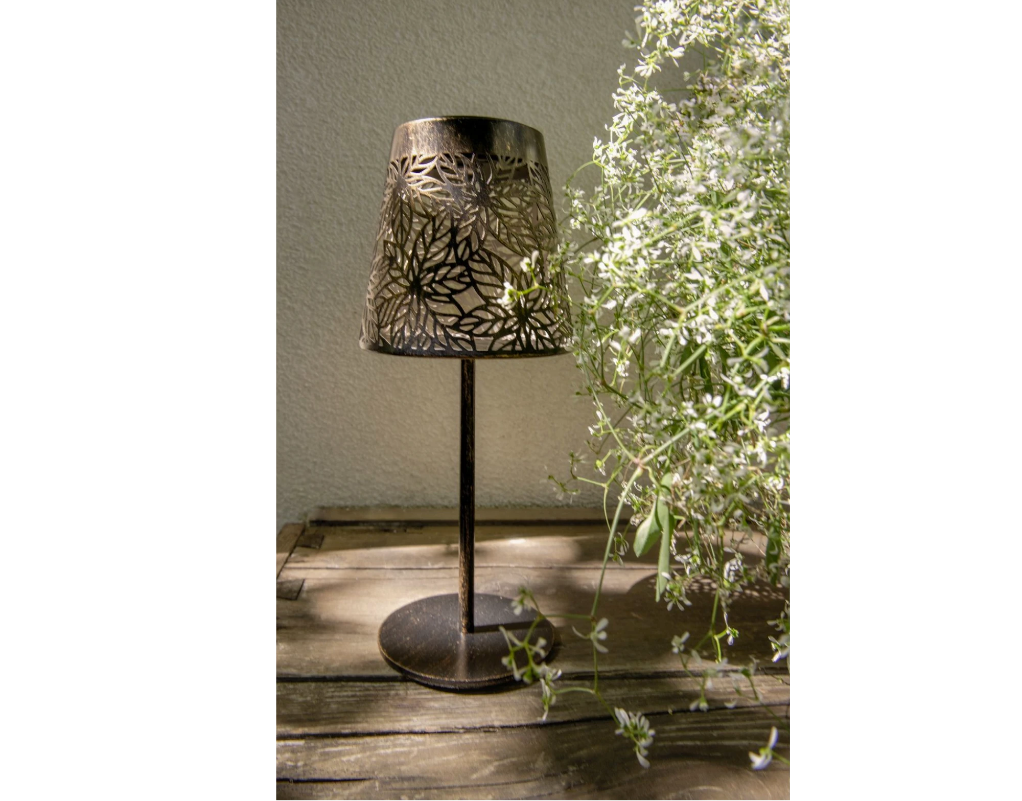 Die Solar Antic Lamp Grazie bringt stimmungsvolles Licht in Ihren Garten, auf den Balkon oder die Terrasse. Mit einer kompakten Höhe von 30 cm und einem Durchmesser von 13 cm ist sie vielseitig einsetzbar – ob als Tischlicht, dekoratives Bodenlicht oder Highlight in Blumenbeeten und Pflanzarrangements.