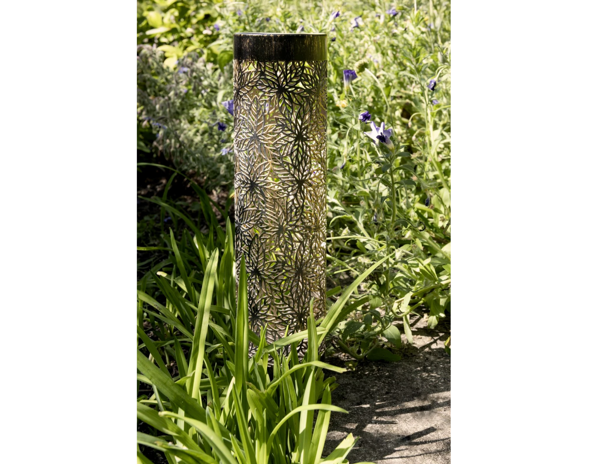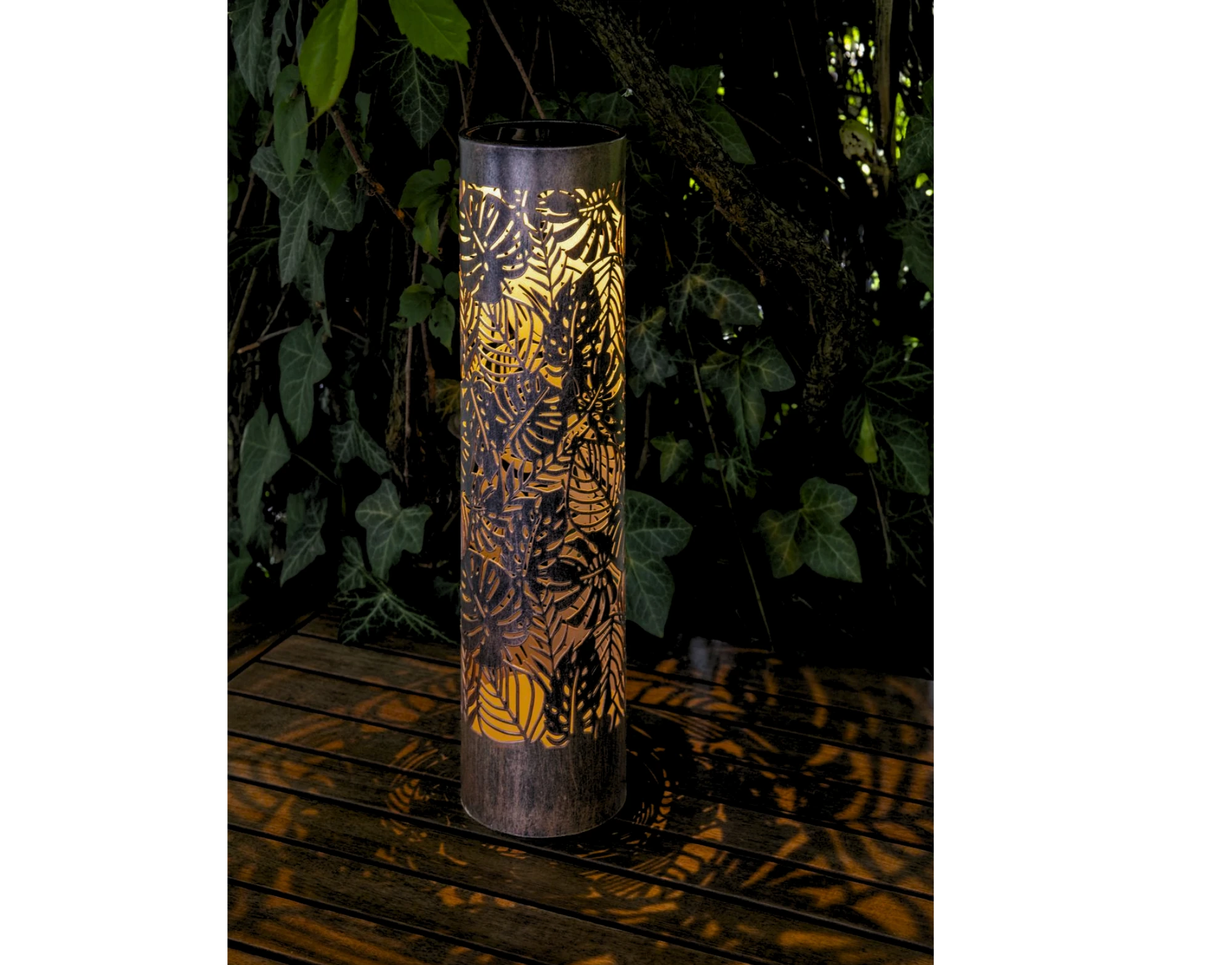 Die Solar Antic Pillar Jungle setzt stilvolle Lichtakzente in Ihrem Garten, auf der Terrasse oder dem Balkon. Mit einer Höhe von 38 cm und einem Durchmesser von 9,5 cm überzeugt die schlanke Solarsäule durch ihr dekoratives Design und ihre vielseitige Einsetzbarkeit – ideal als Bodenlicht entlang von Wegen, in Blumenbeeten oder als elegantes Highlight in Pflanzgefässen. Dank des praktischen Erdspiesses lässt sich die Leuchte einfach und sicher im Boden verankern.
