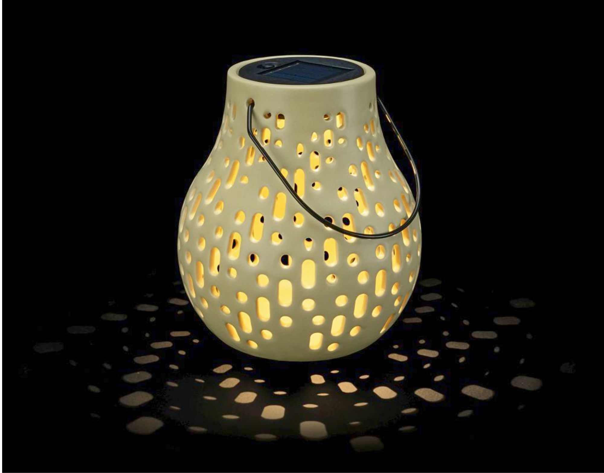 Solar Ceramic Lamp, elegante Solarlaterne in Hellgelb