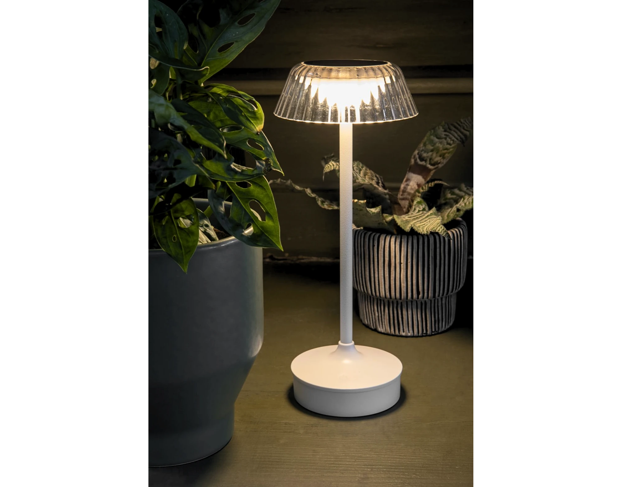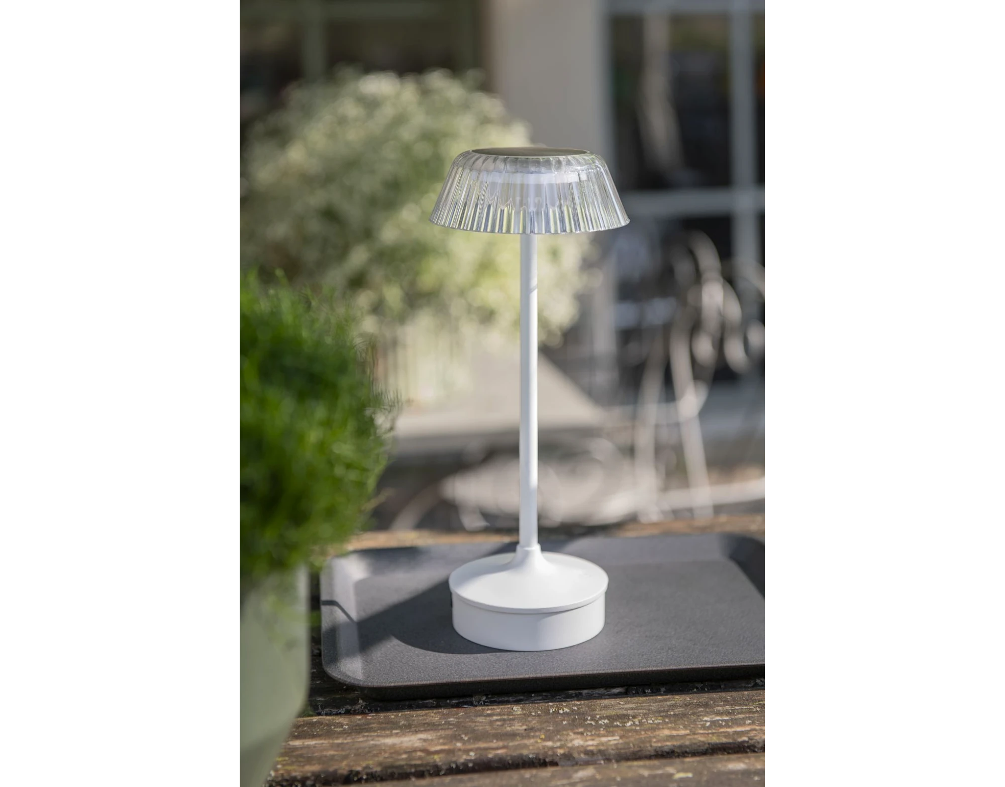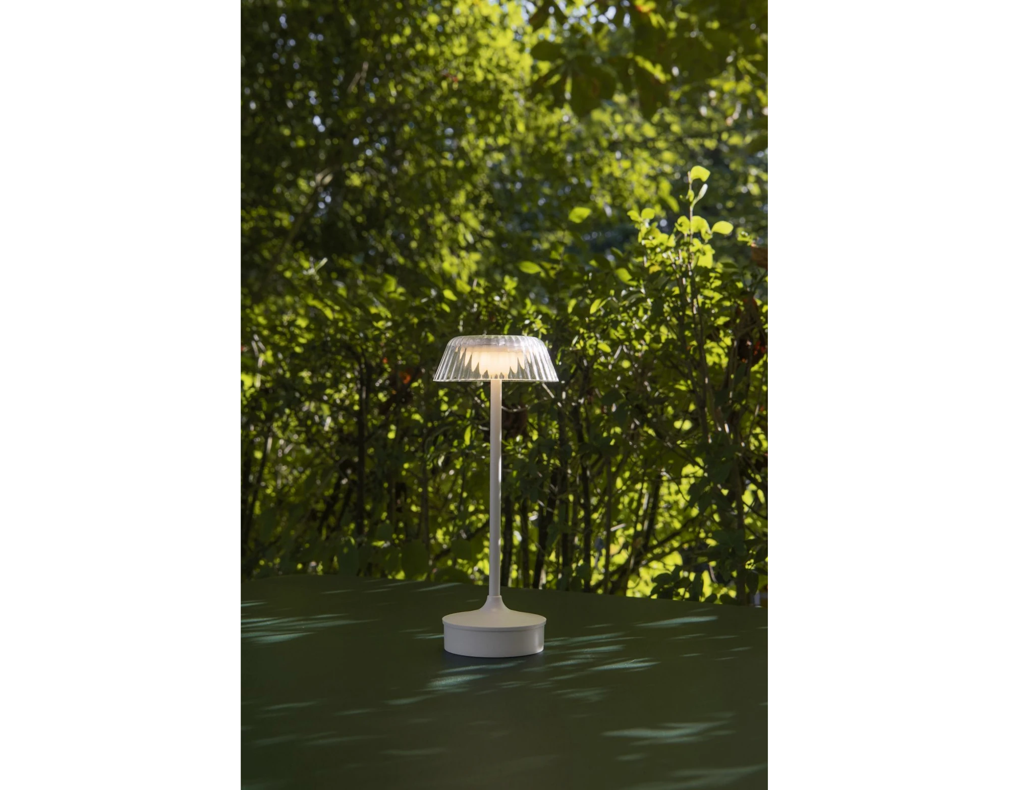 Das robuste Kunststoffgehäuse in elegantem Weiss schützt die Lampe vor Witterungseinflüssen und macht sie langlebig für den Einsatz im Aussenbereich. Perfekt für gemütliche Sommerabende, stimmungsvolle Dekorationen oder als dekoratives Highlight bei Outdoor-Partys.