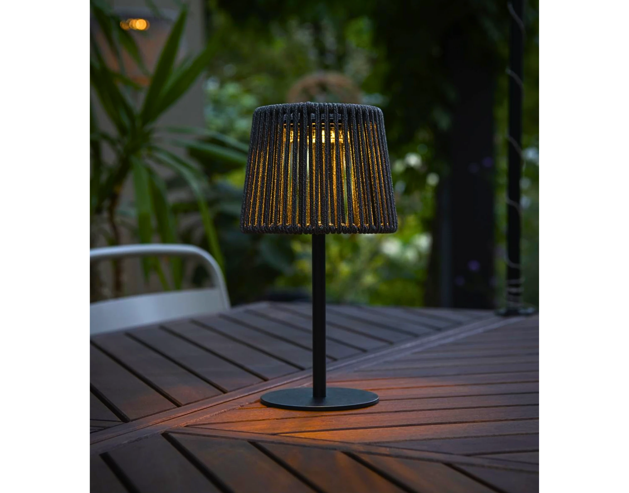 Dank der Kombination aus robustem Kunststoff und Metall in elegantem Schwarz ist die Lampe langlebig und wetterfest. Perfekt für Sommerabende, Gartenpartys oder als stilvolles Licht-Highlight auf dem Esstisch im Freien.