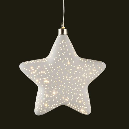 LED-Glasstern „Glamour Star white“ – Ø18 cm, 9 LEDs, Timer, Batteriebetrieb