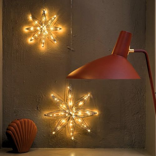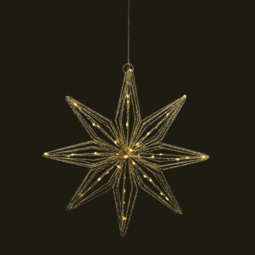 Der dekorative LED-Stern "Svenja L" bringt stimmungsvolles Licht in Ihr Zuhause. Mit seinem filigranen Design aus edel goldfarbenem Metall und der dezenten Kabelführung wird er zum eleganten Blickfang – ideal für die festliche Jahreszeit.