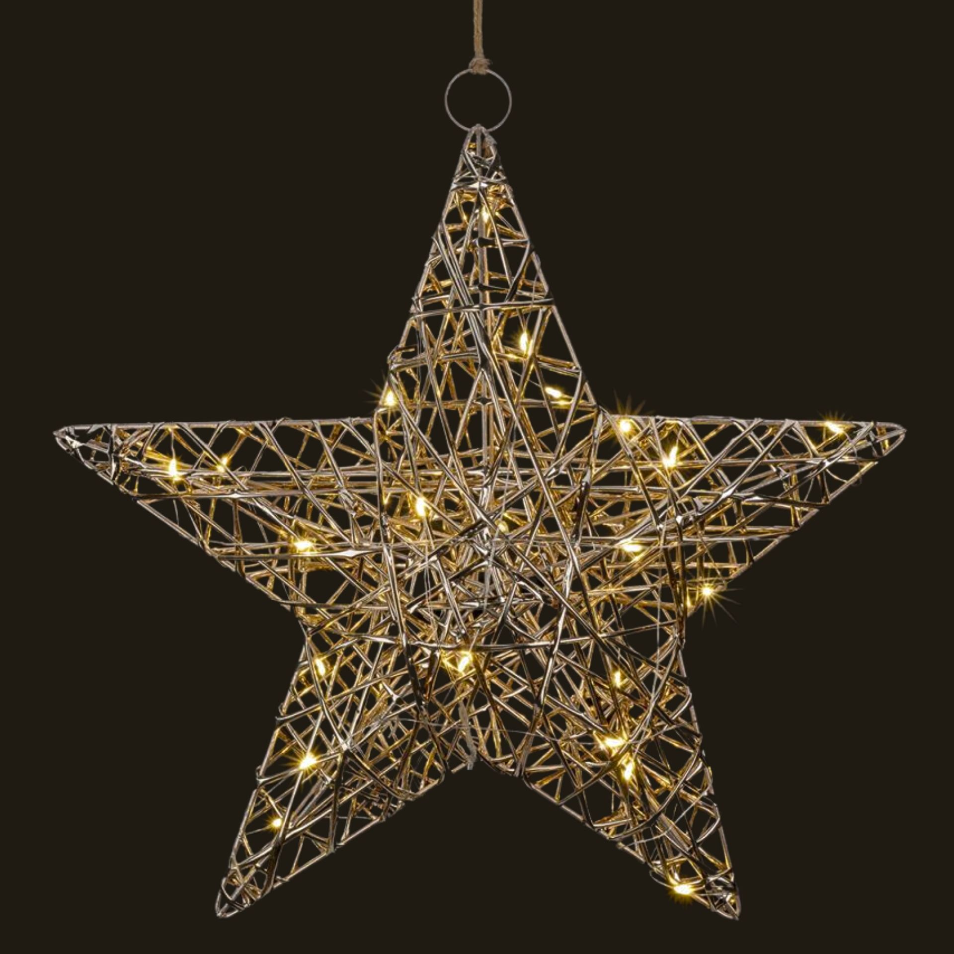Stern gold hängend, 20 LEDs warmweiss, batteriebetreiben & Timerfunktion