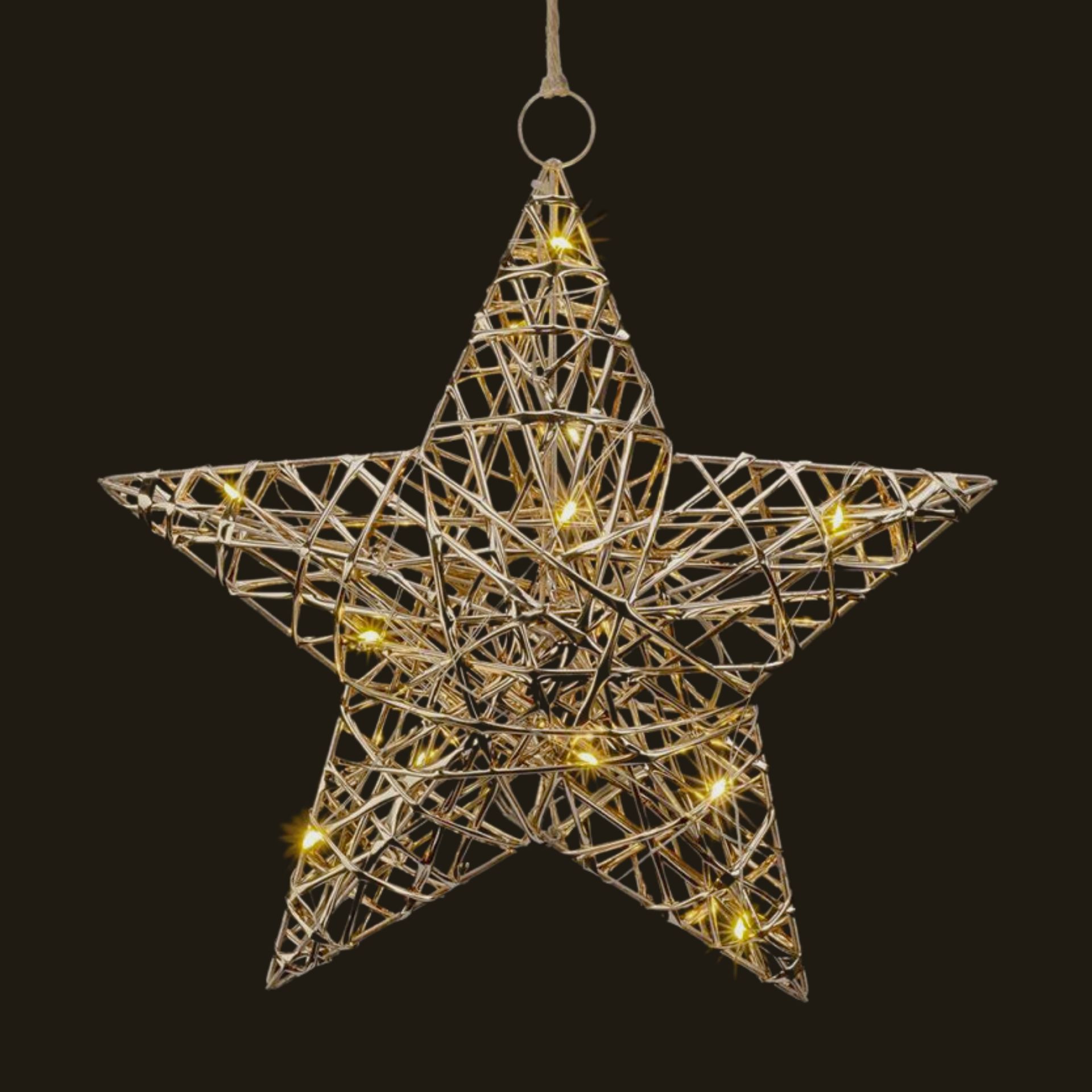 Stern gold hängend S, 15 LEDs warmweiss, batteriebetreiben & Timerfunktion