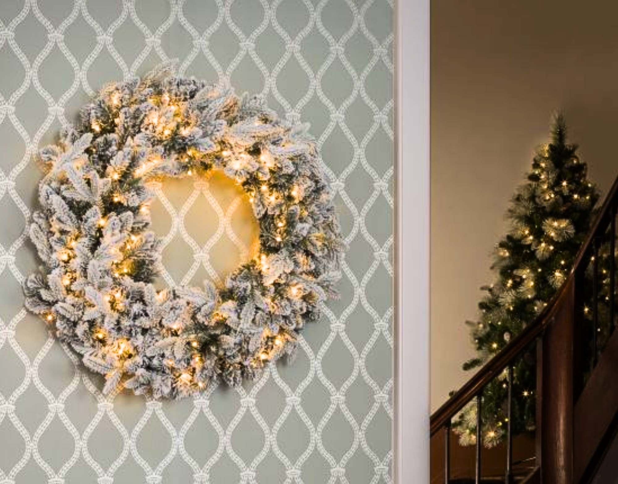 Cette couronne de Noël décorative a un diamètre de 70 cm et une hauteur de 22 cm. Elle est dotée d'un effet neige qui crée une ambiance hivernale. Au total, 240 LED blanc chaud sont déjà intégrées et assurent une lumière particulièrement chaleureuse et accueillante.