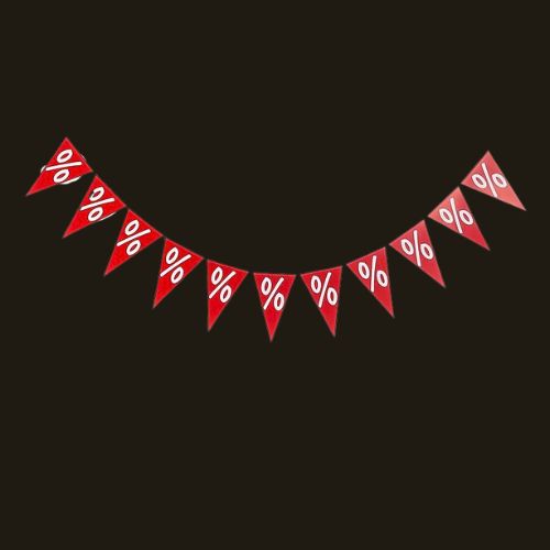 Cette guirlande de fanions avec symbole pourcentage est parfaite pour décorer vitrines, promotions ou actions de soldes. La guirlande est fabriquée en PVC résistant, mesure env. 200 cm de long et 30 cm de haut, et comprend 11 fanions affichant le symbole %.