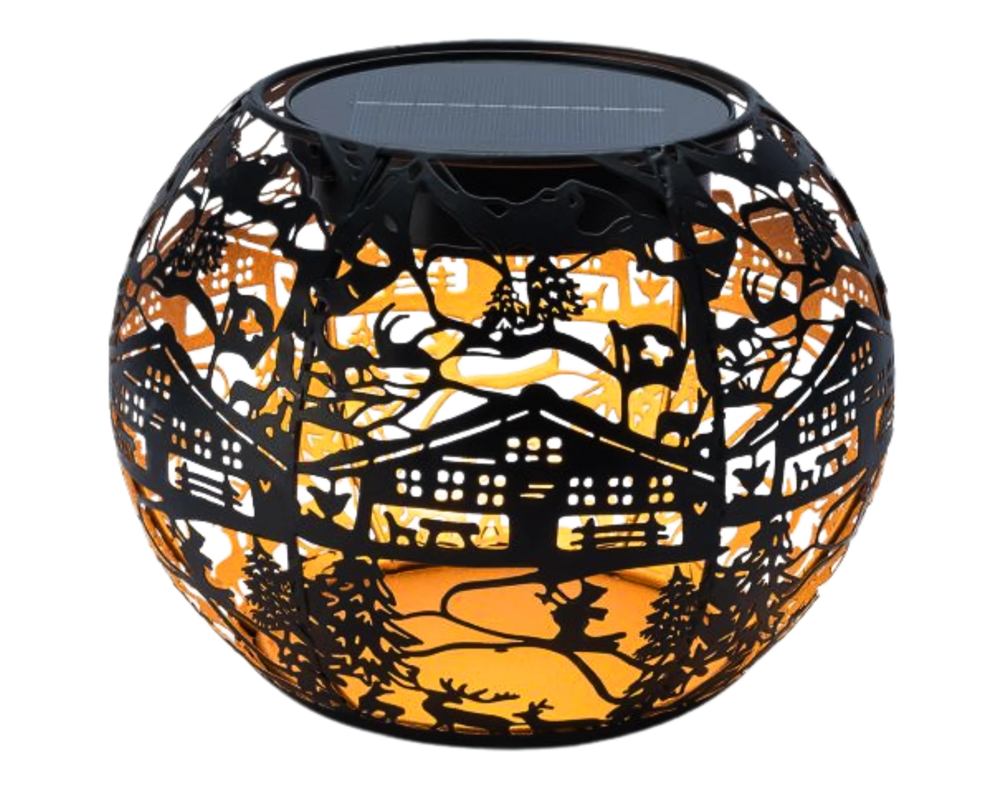 La Solar Antic Mini Silueta séduit par son coloris noir classique et son motif suisse en découpe traditionnelle, qui crée des jeux de lumière délicats. Sa LED blanc chaud diffuse une lumière douce et chaleureuse, parfaite pour le balcon, la terrasse, le jardin ou l’intérieur.
