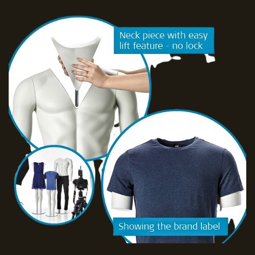 Das abnehmbare Hals-Teil ermöglicht es, auch die Details am Kragen sichtbar zu machen. So können z.B. spezielle Label-Etiketten in Szene gesetzt werden.