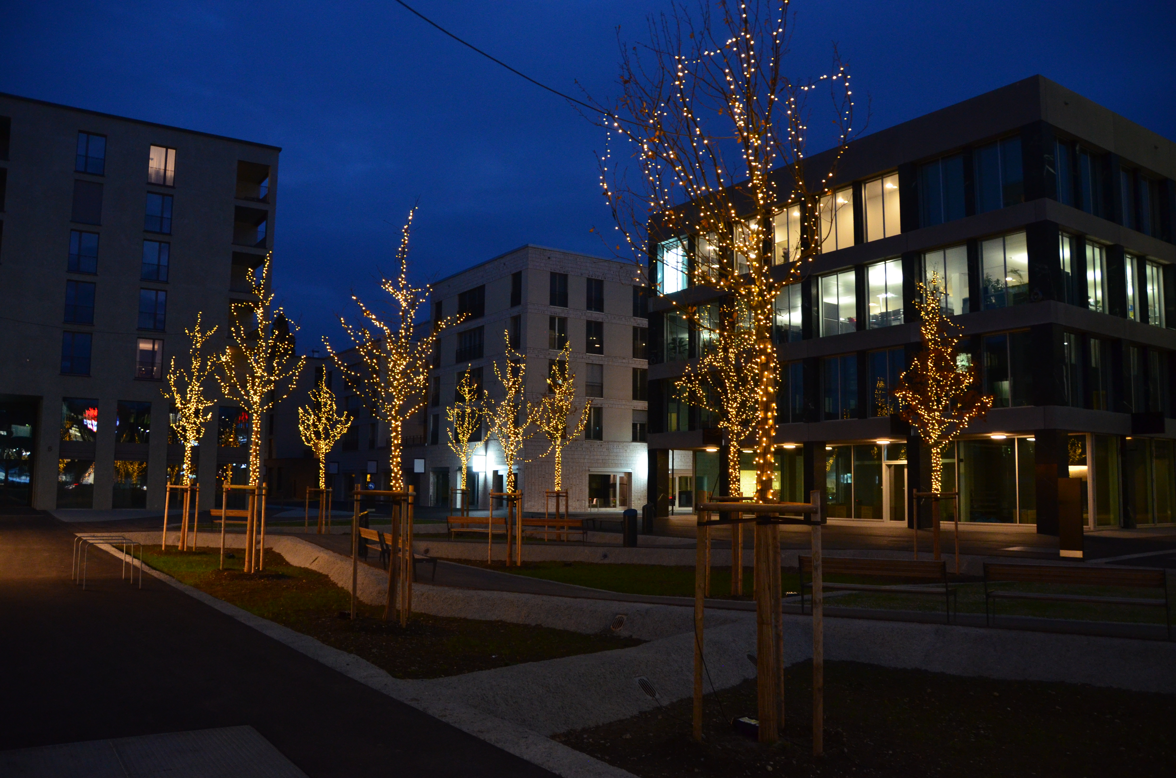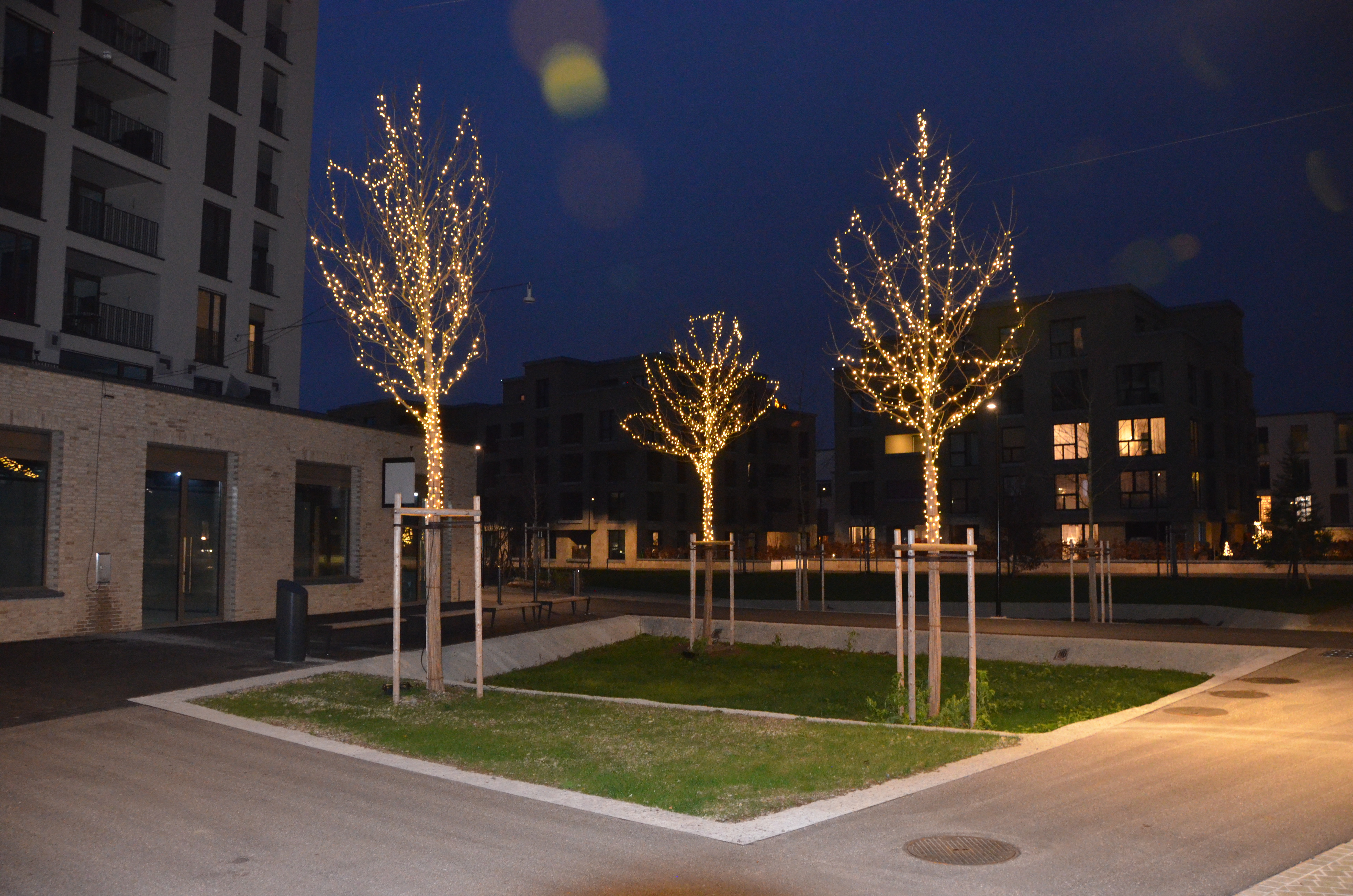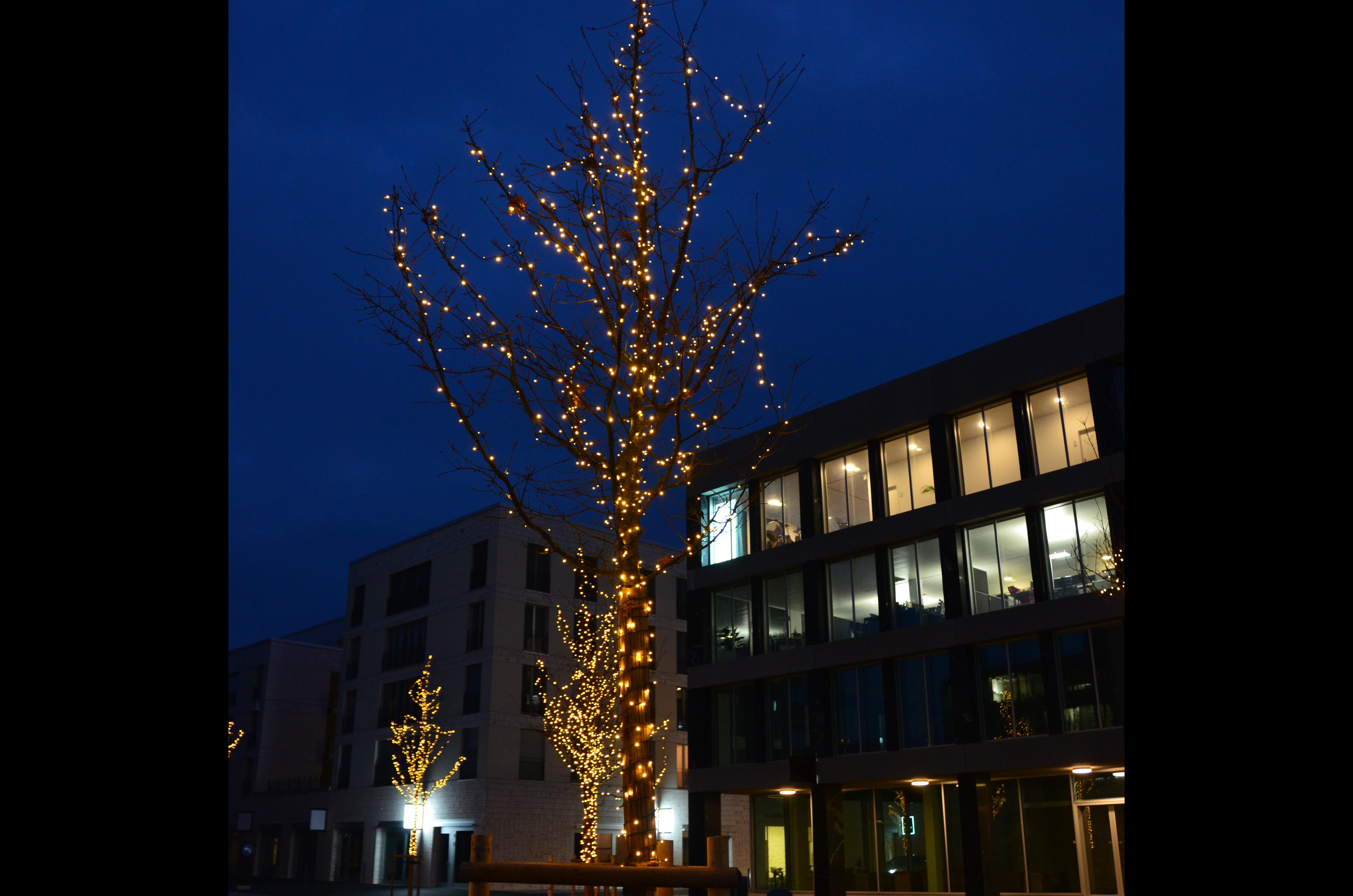 -Die beiden Gebäudeteile wurden mit 61 Laufmeter LED Lichtervorhänge bespannt. Für eine bessere Stabilität und um das verheddern der einzelnen