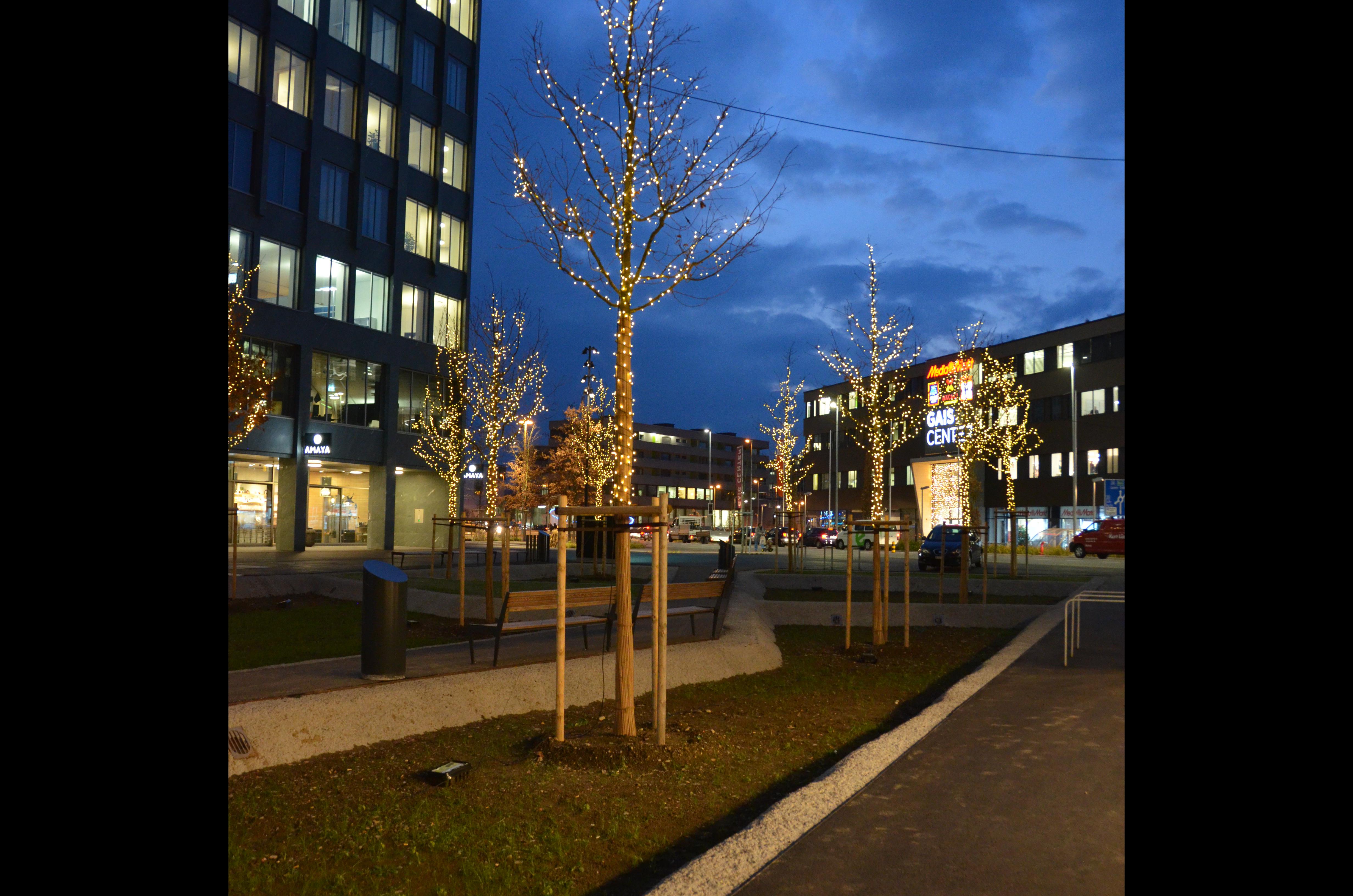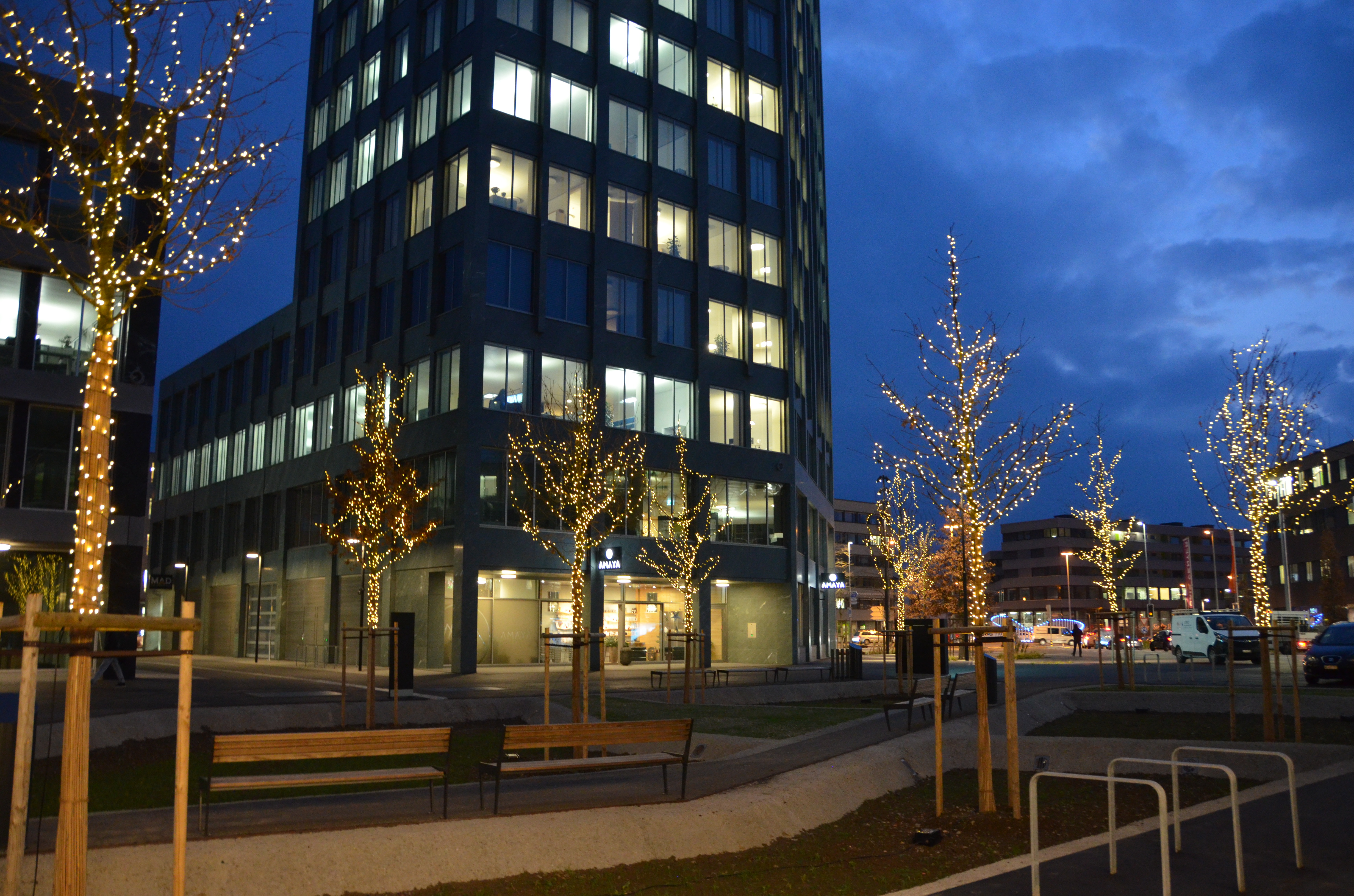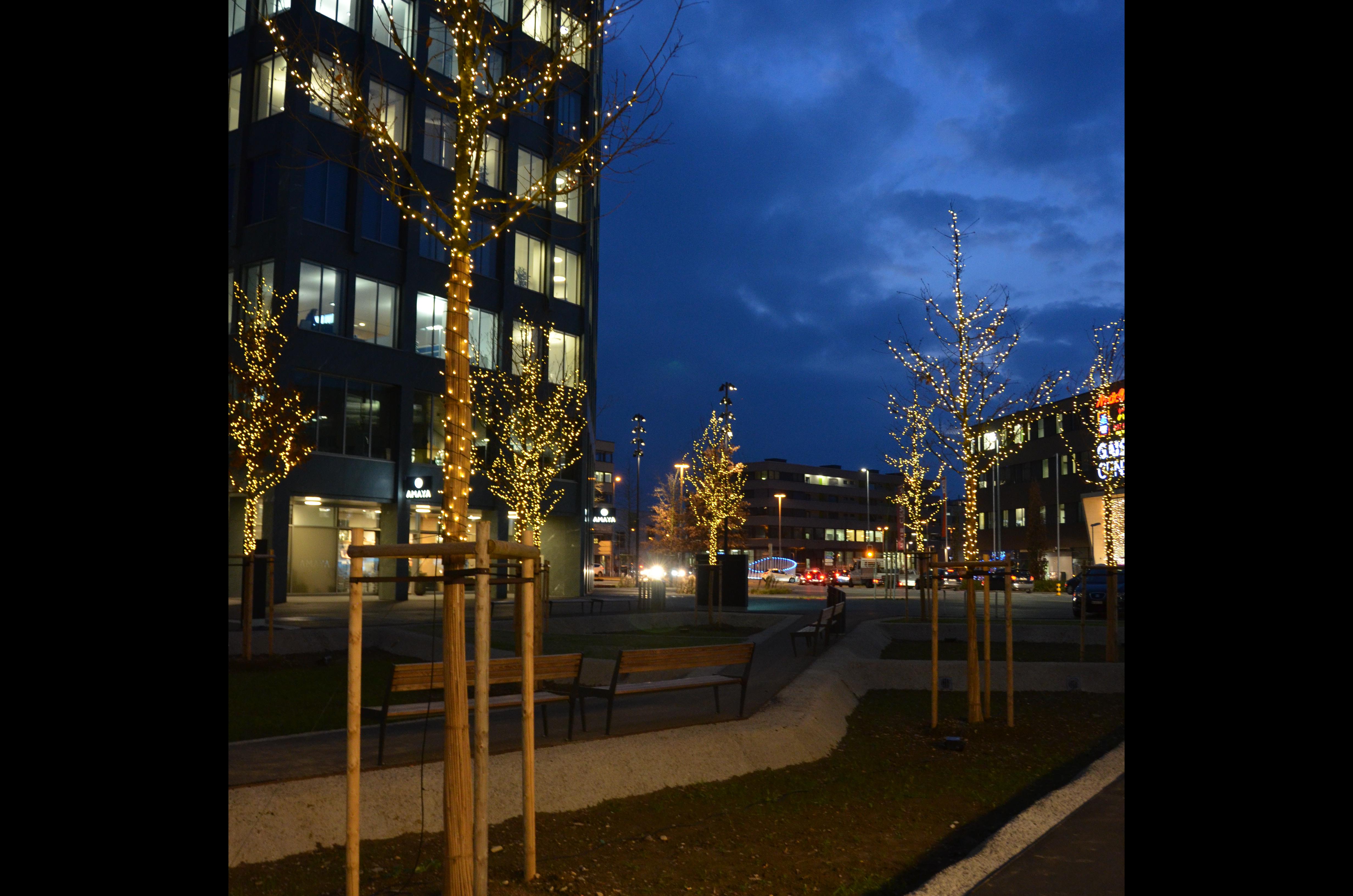 -Die beiden Gebäudeteile wurden mit 61 Laufmeter LED Lichtervorhänge bespannt. Für eine bessere Stabilität und um das verheddern der einzelnen