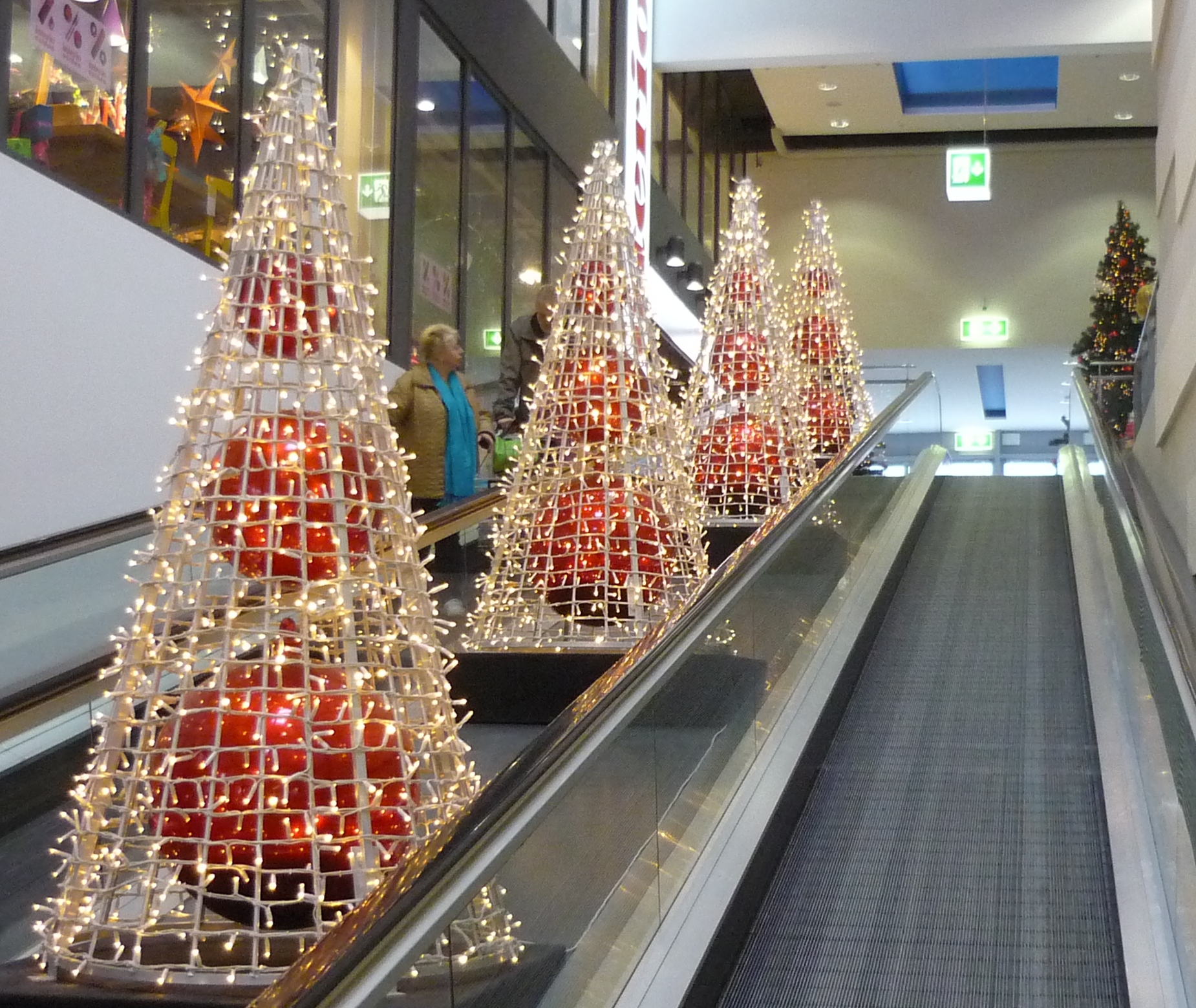 Tannenbäume Aluminium Konstruktion mit LED Lichterketten warmweiss und grossen