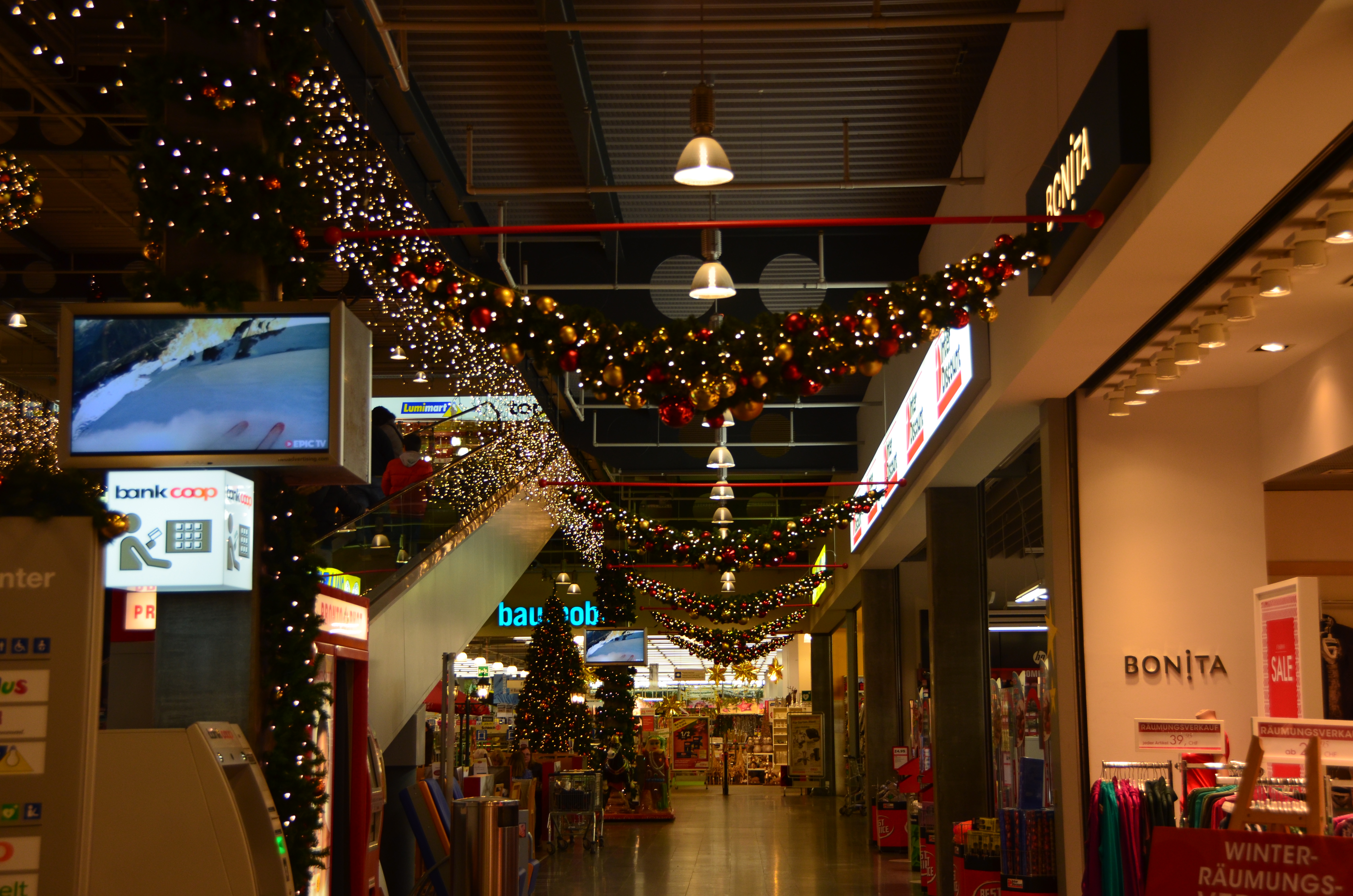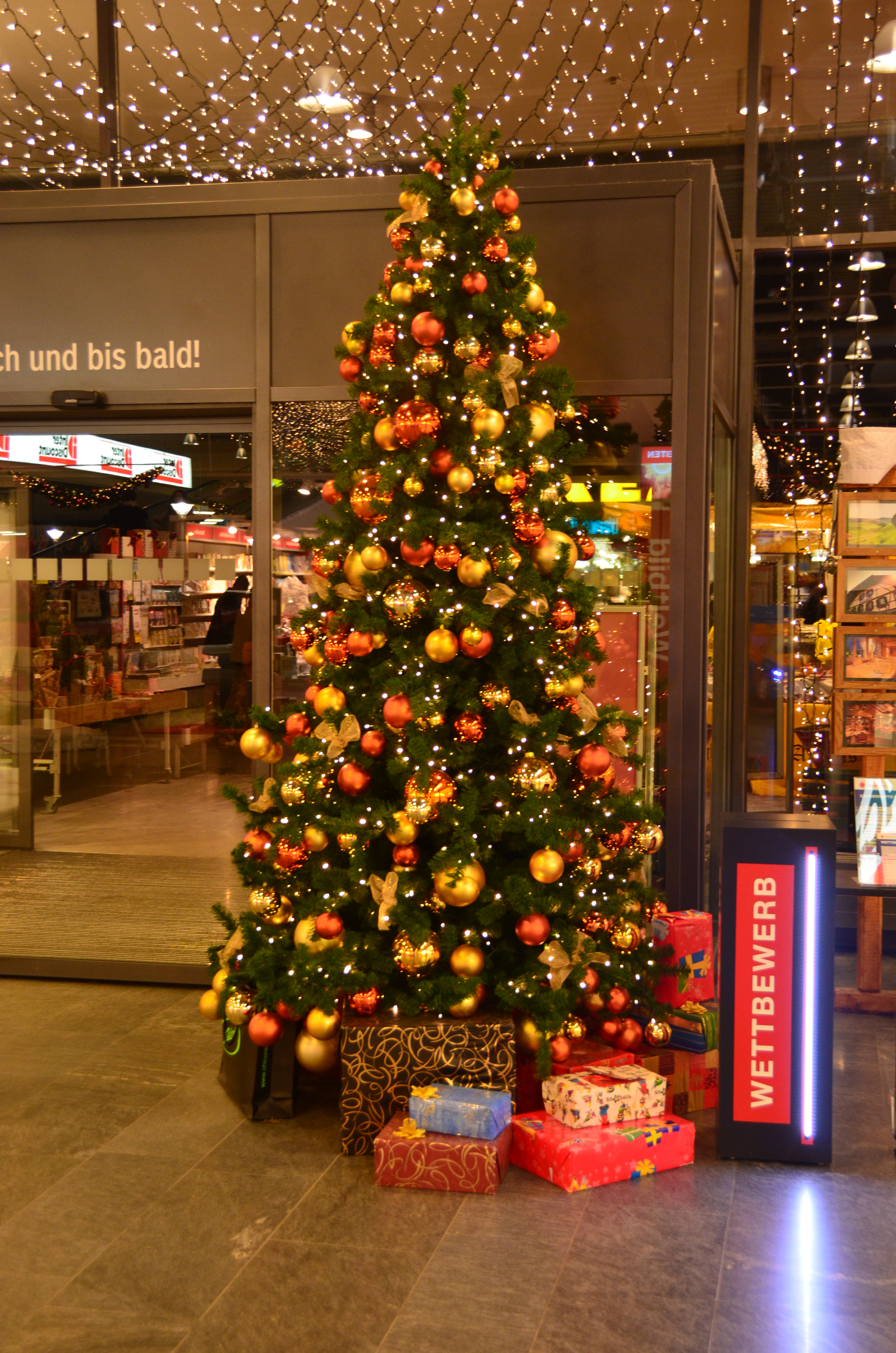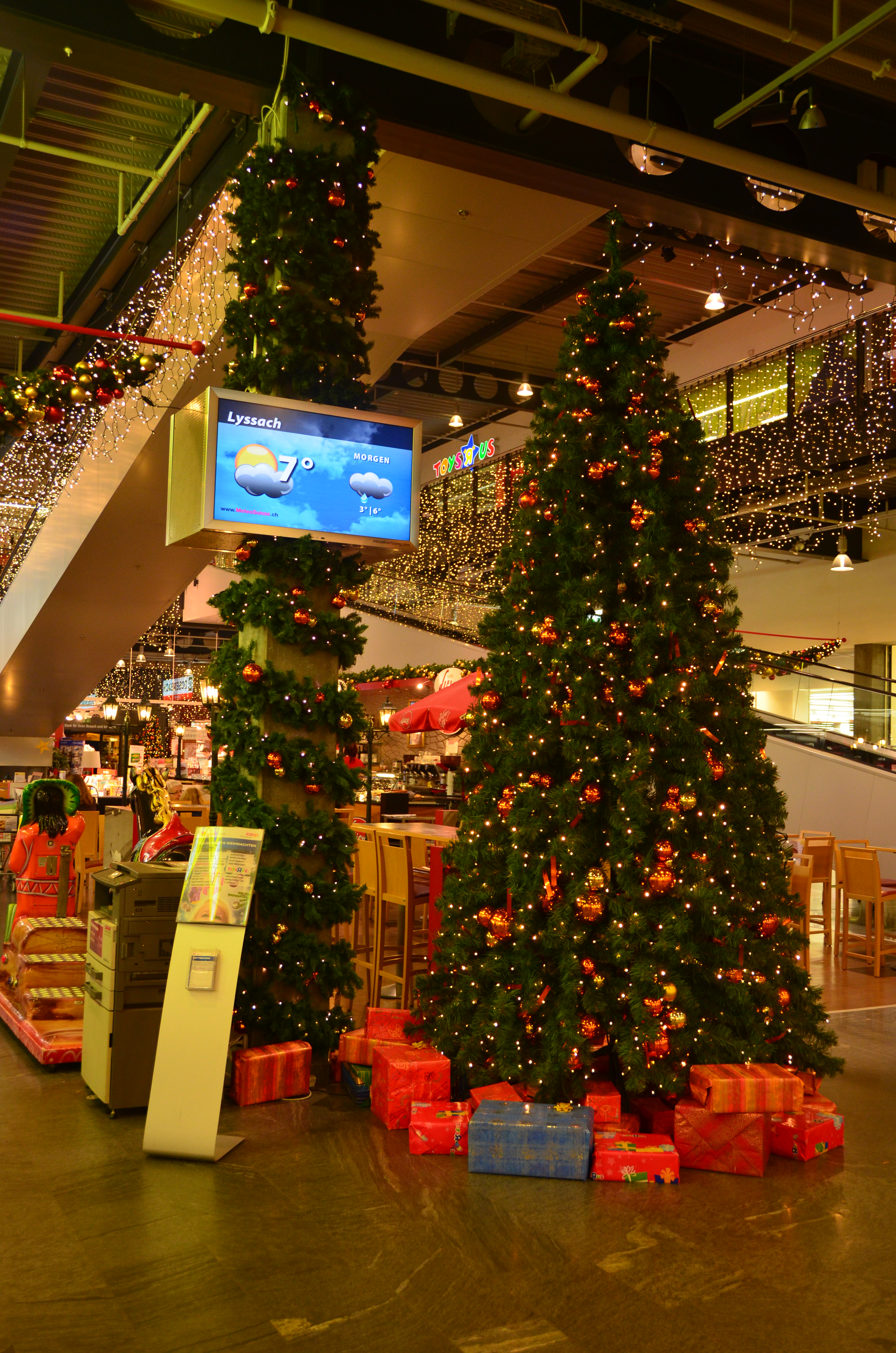 - passend dazu der grosse künstliche Weihnachtsbaum mit dem selben LED Licht und Kugeldekor