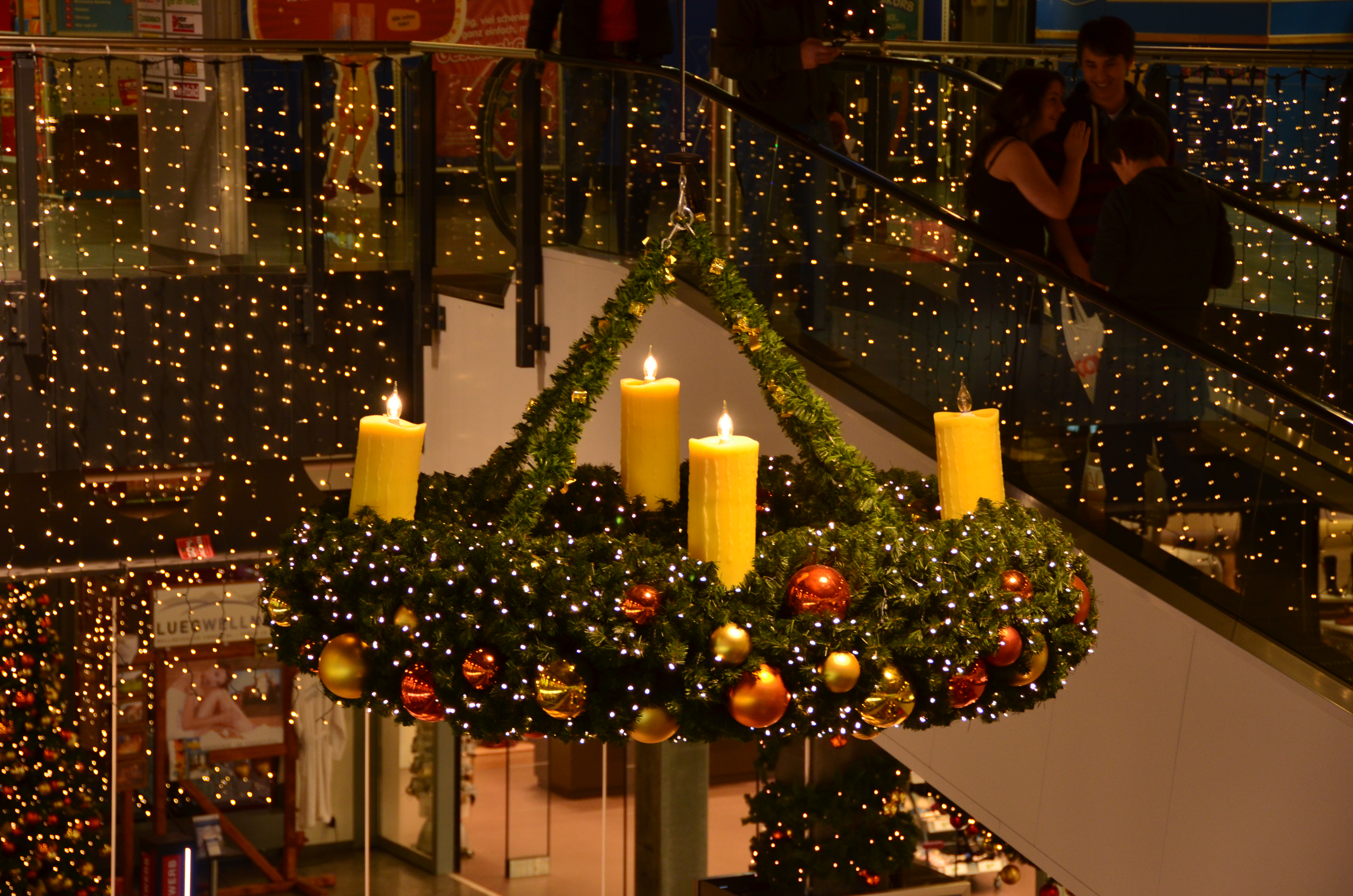 - auch der künstliche gigant Tannenkranz ist mit LED Licht und Kugeldekor bestückt und hat zusätzlich noch 4 grosse LED echtwachs Kerzen