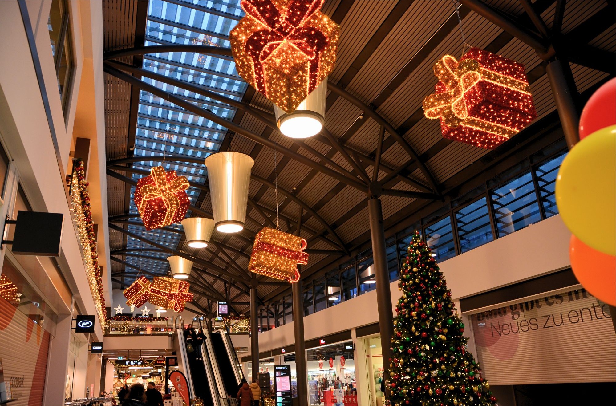 Dieses Projekt verbindet hochwertige Dekoration mit einem durchdachten Lichtdesign und schafft eine einladende, festliche Atmosphäre für alle Besucher/innen des Einkaufszentrums.