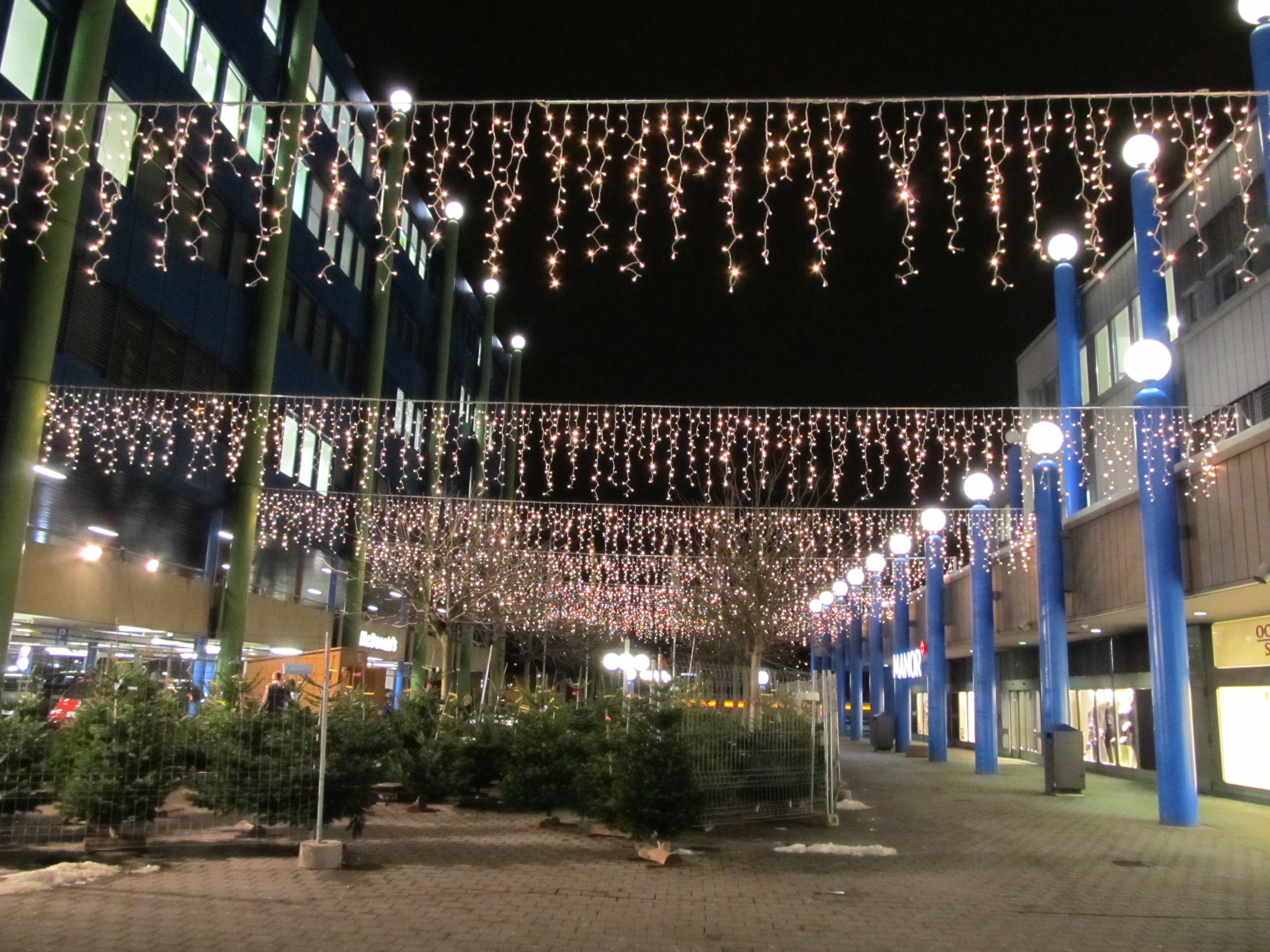 - Geländer und Säulen sind mit LED Lichtervorhängen eingekleidet