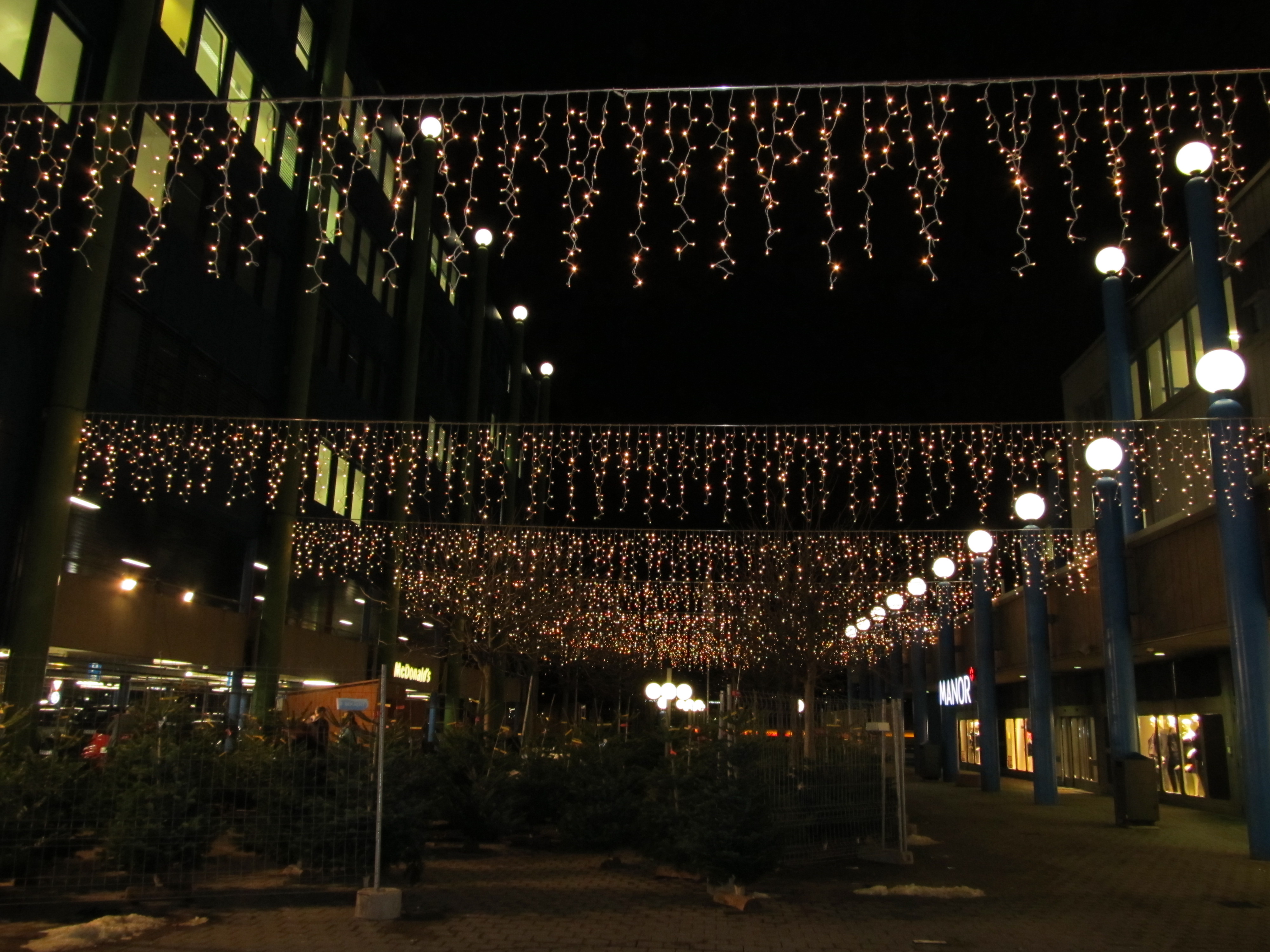 - Vorplatz: LED IceLite Vorhänge an Drahtseilen aufgehängt