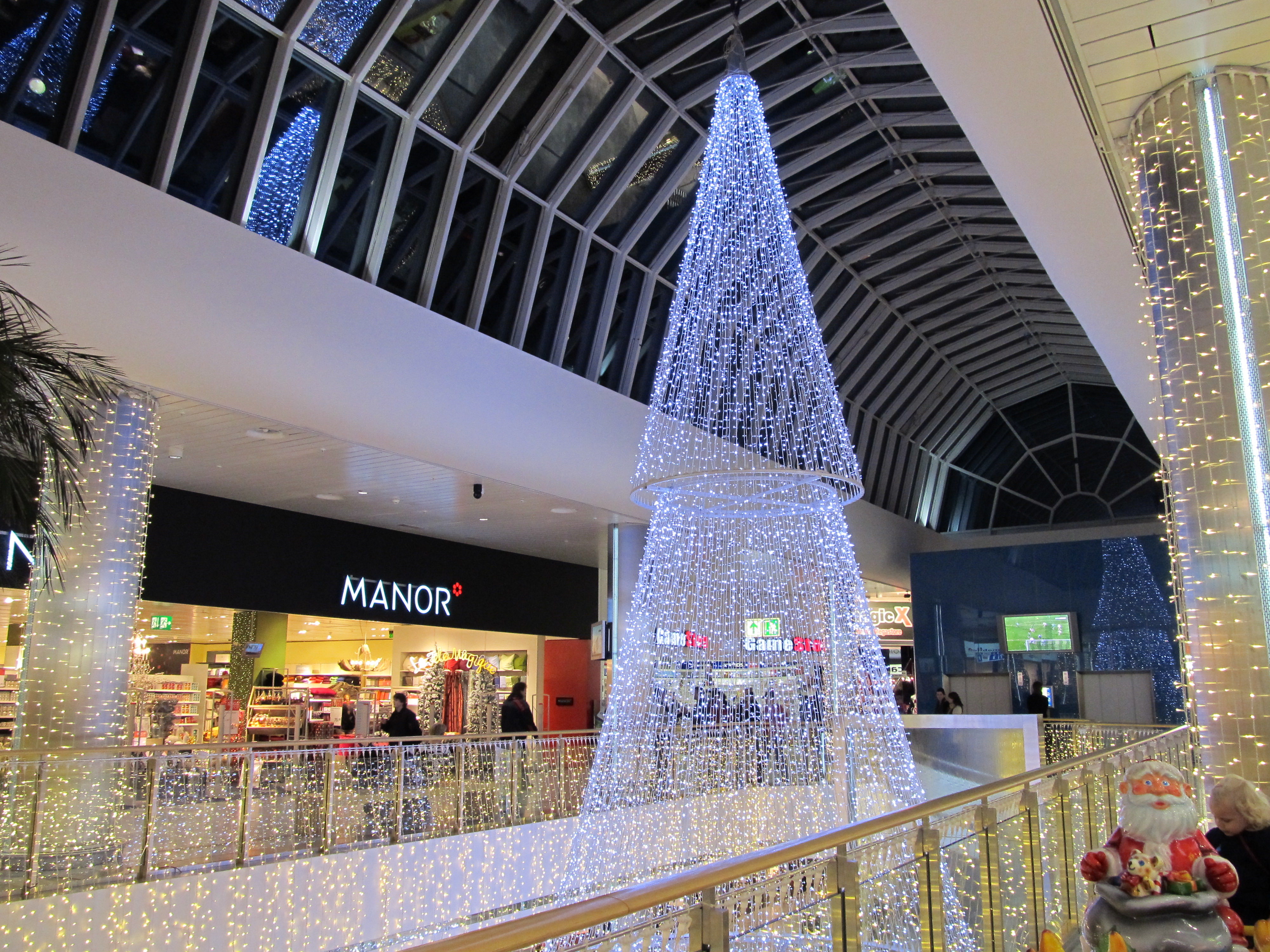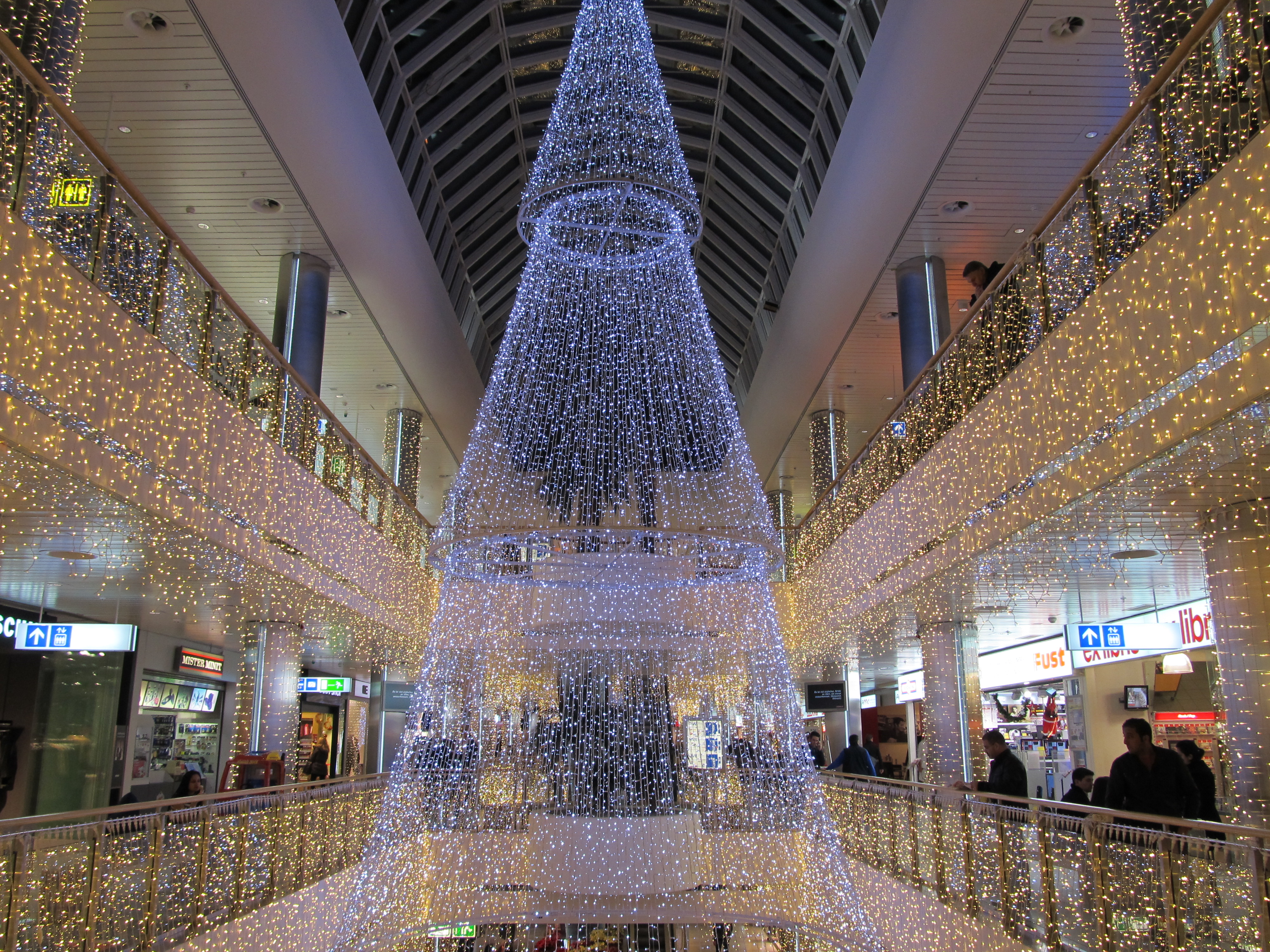 - Mittelpunkt der Dekoration: Tannenbaum bestehend aus einer Aluminiumkonstruktion und reinweissen Lichterketten