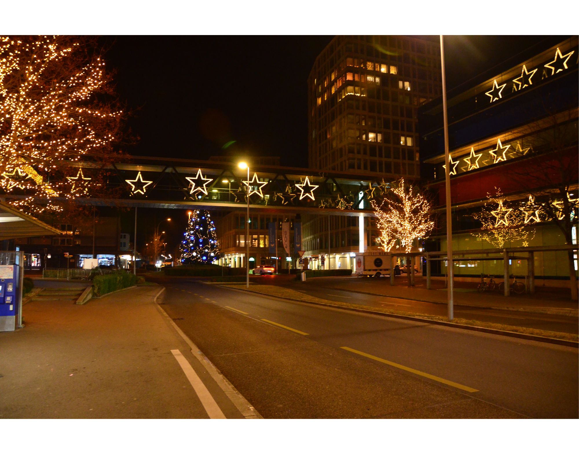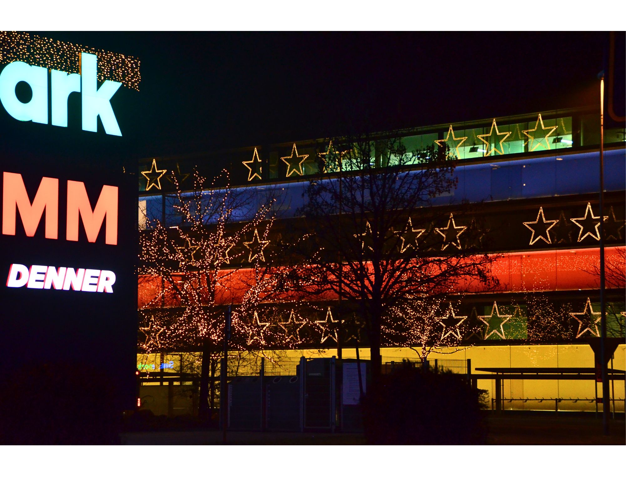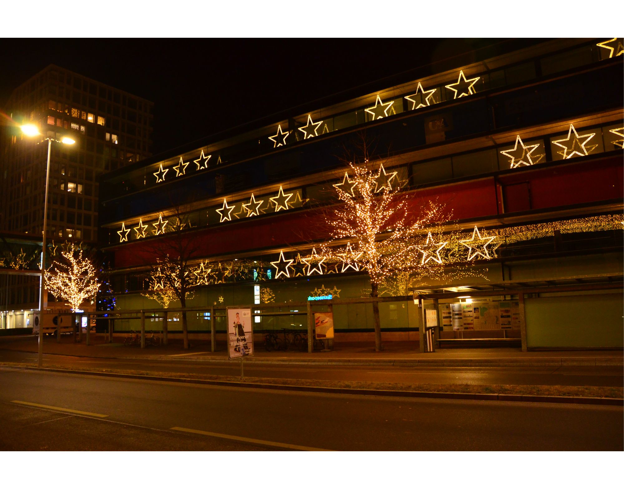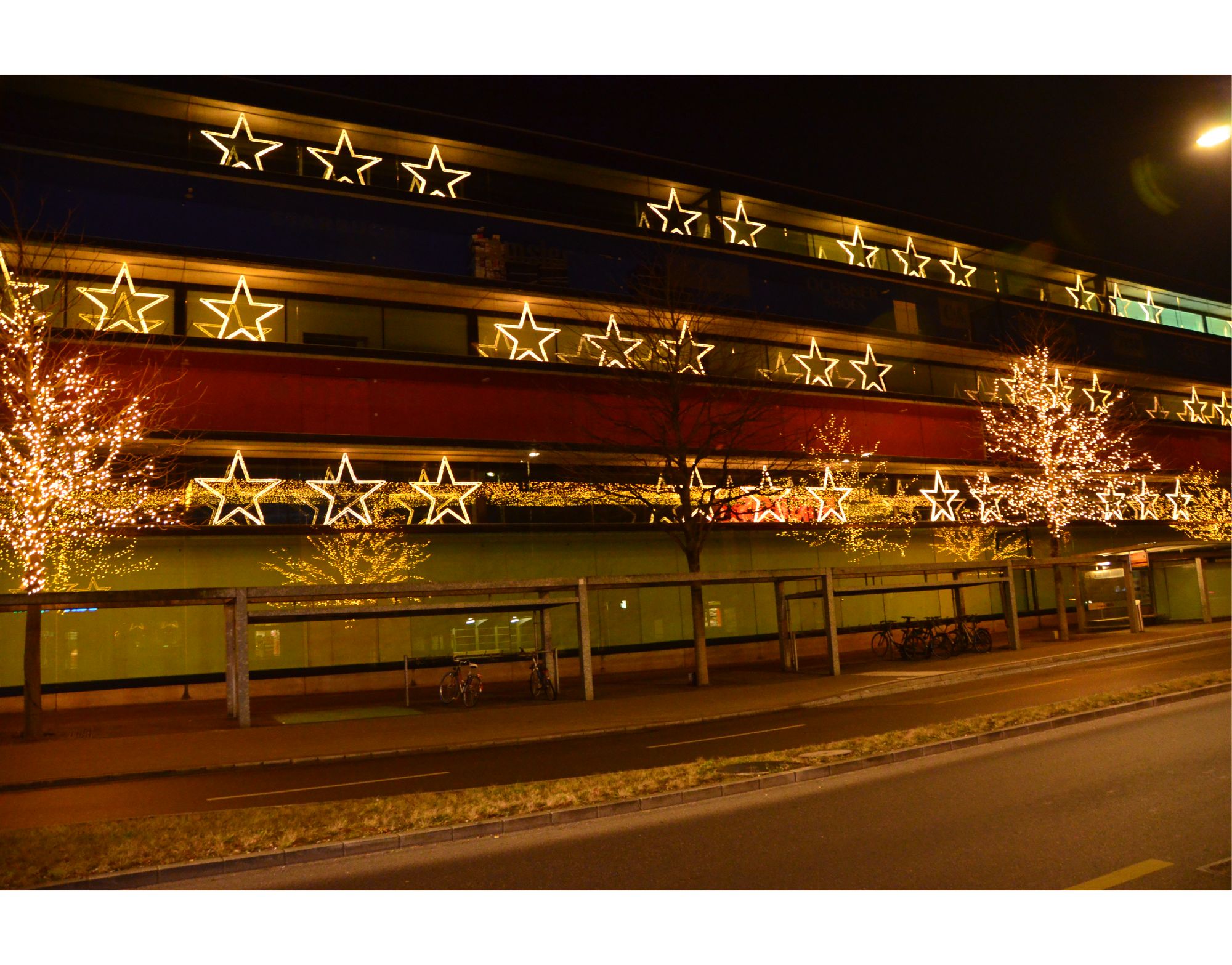 Grosse Lichtsterne: Aluminiumkonstruktion ausgerüstet mit doppeltem warmweissen Lichtschlauch.