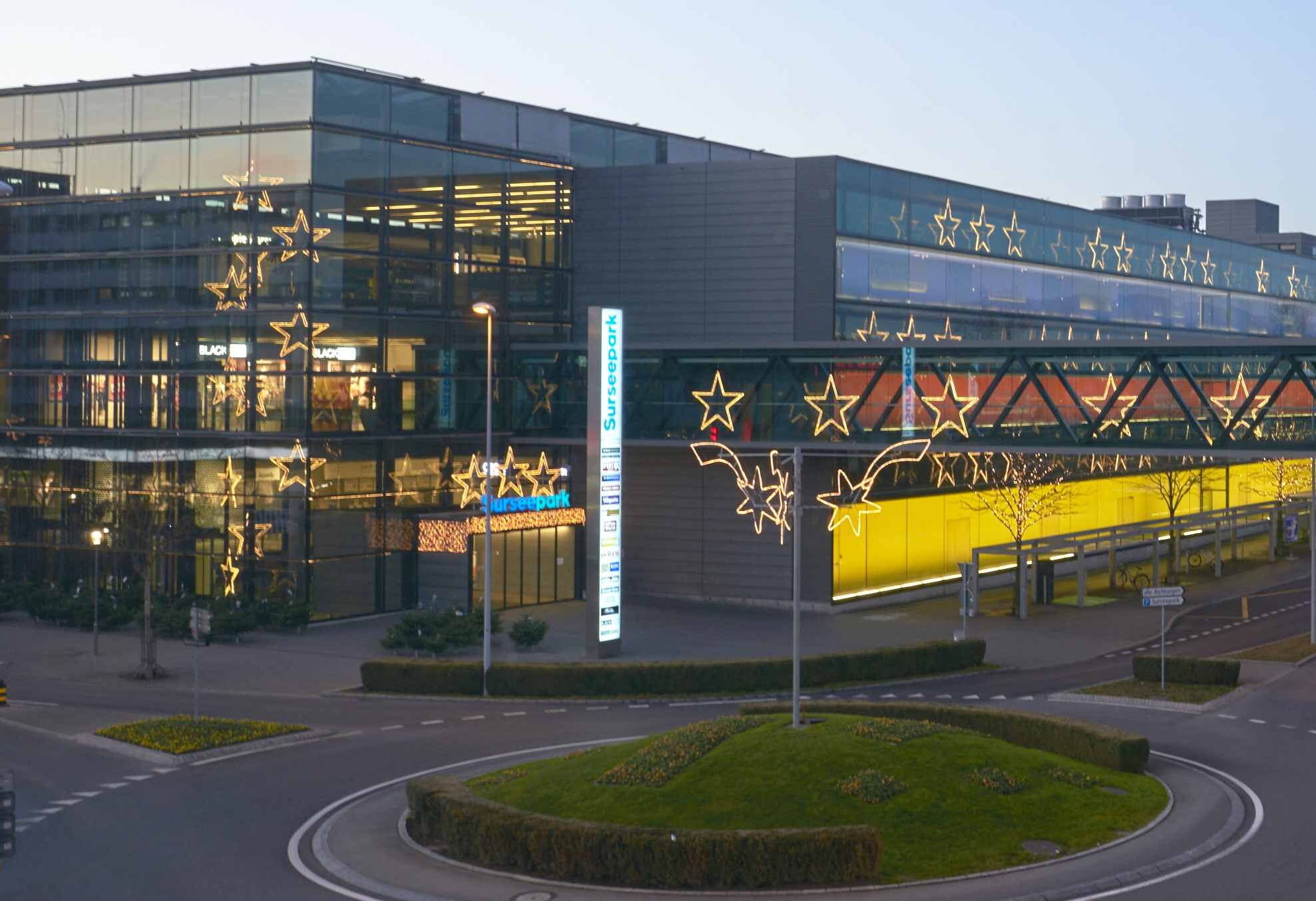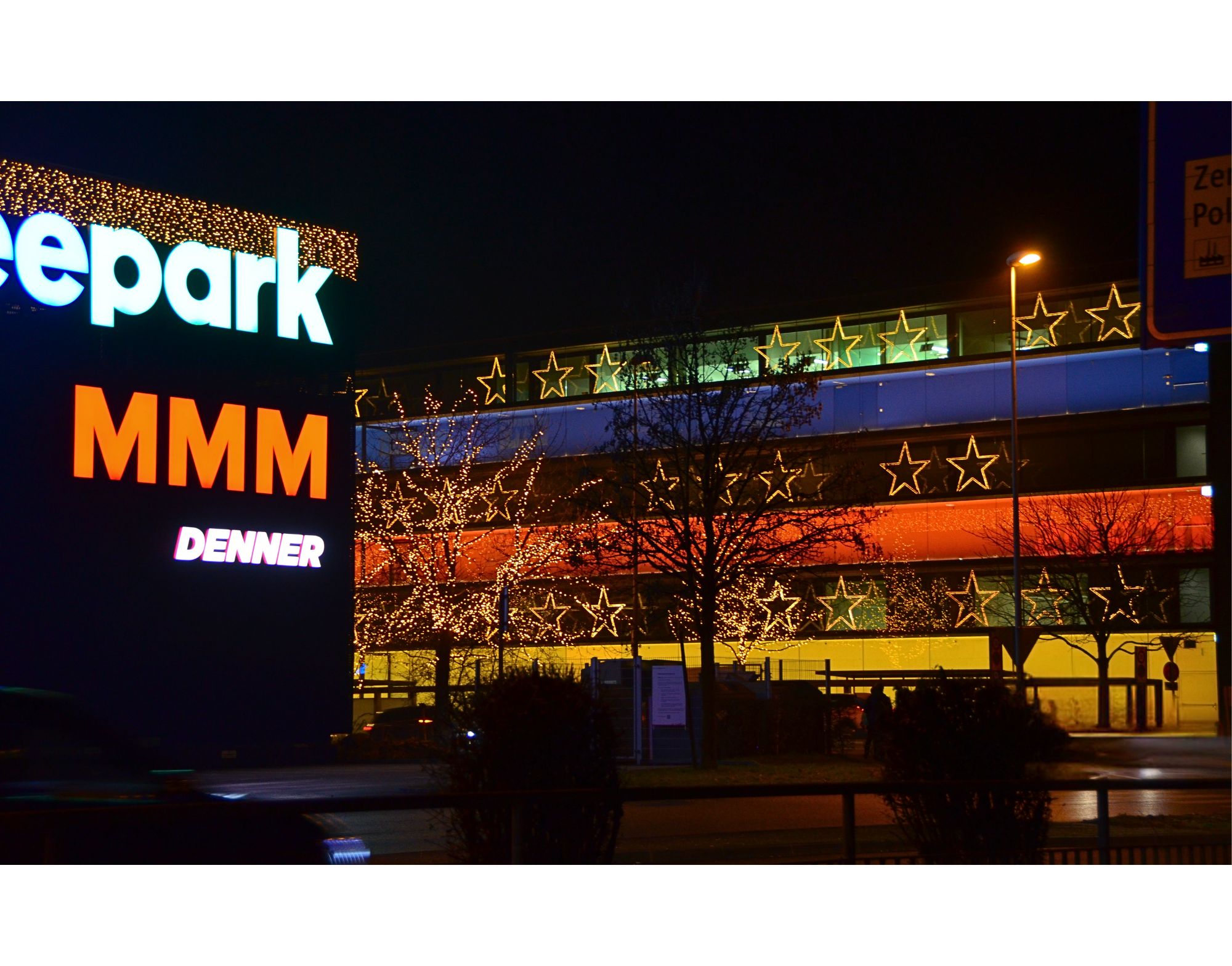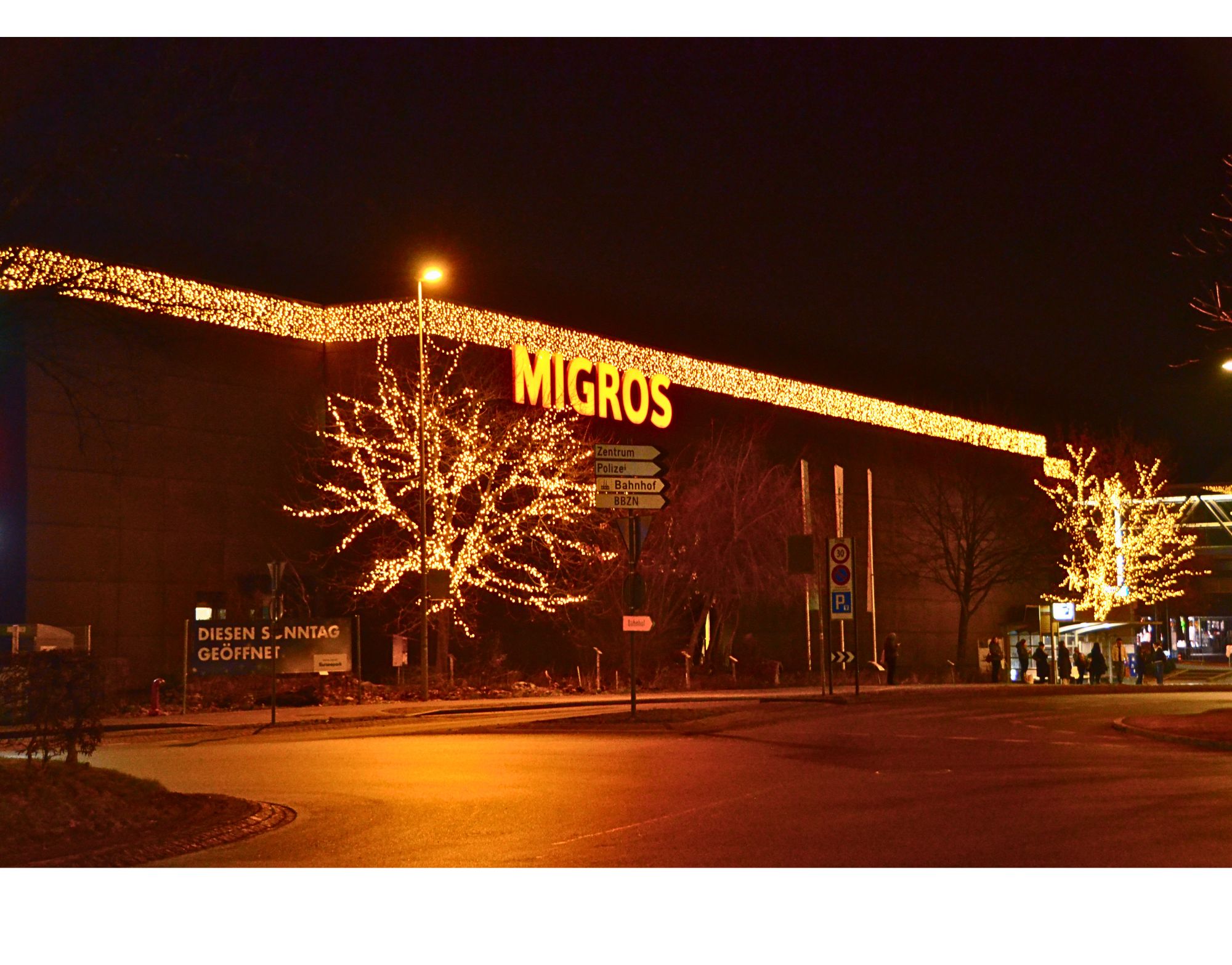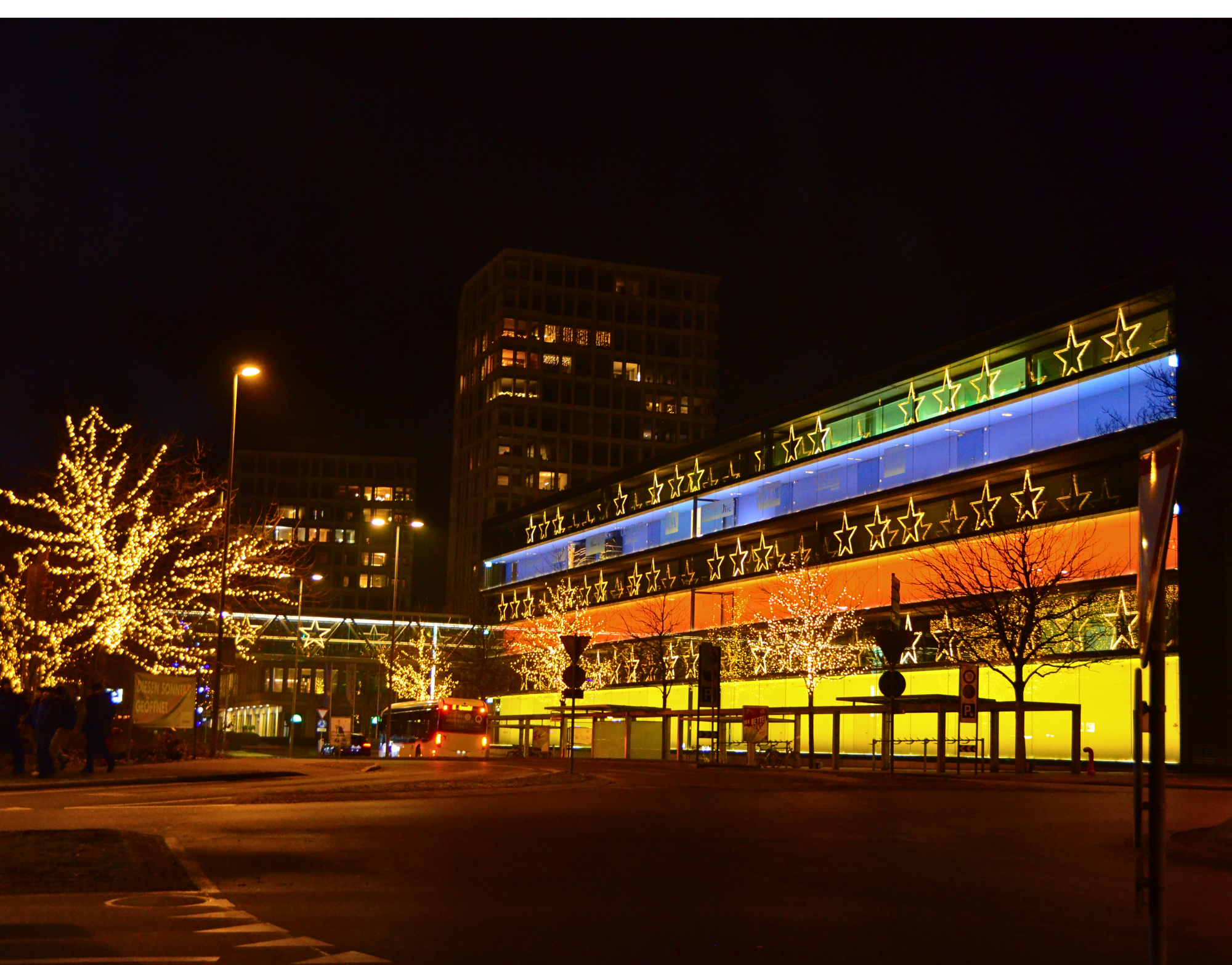 Grosse Lichtsterne: Aluminiumkonstruktion ausgerüstet mit doppeltem warmweissen Lichtschlauch.